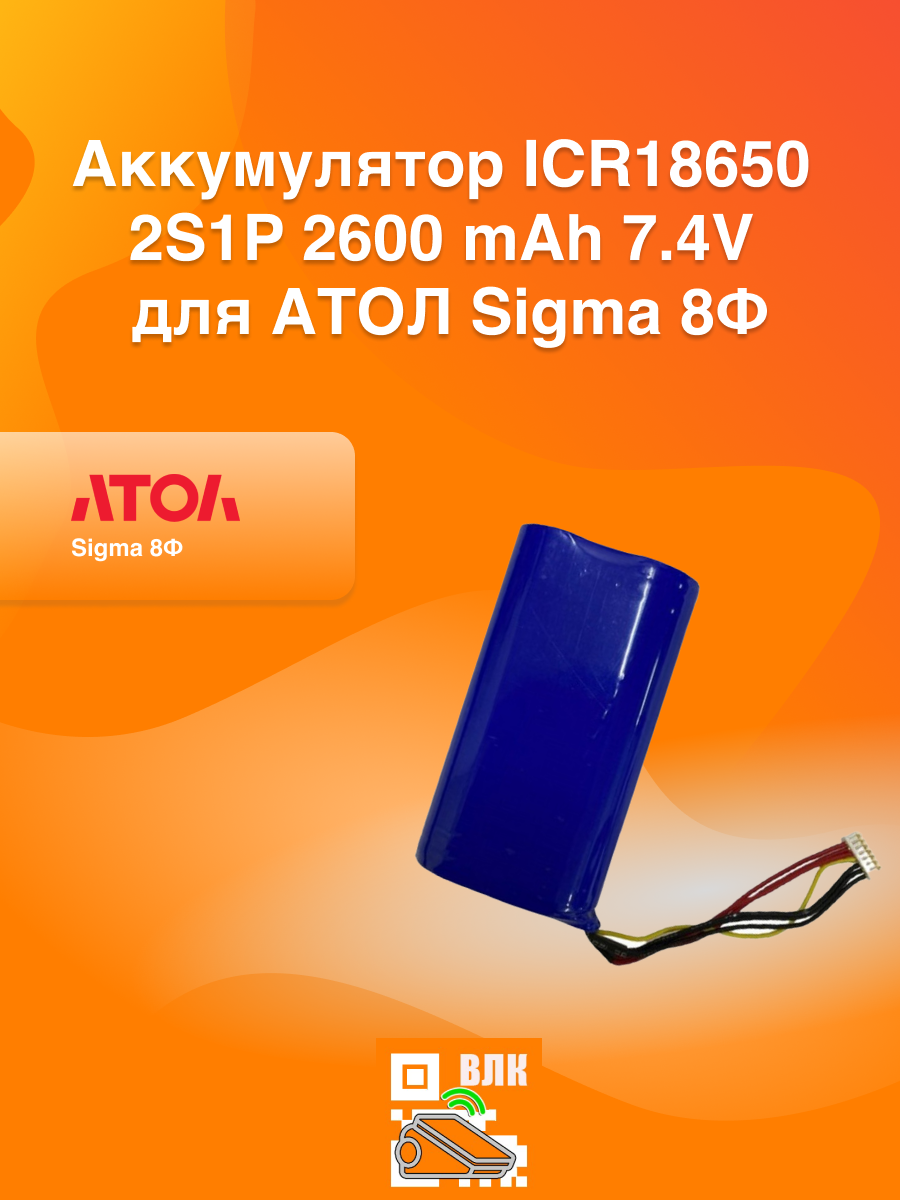 Аккумулятор ICR18650 2S1P 2600 mAh 7.4V для АТОЛ Sigma 8Ф интересное: