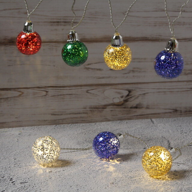 Светодиодная гирлянда карнавальные шарики, 10 разноцветных ламп с тёплыми белыми LED-огнями, 1.8+1.5 м, прозрачный провод, SNOWHOUSE BLD10M-WW