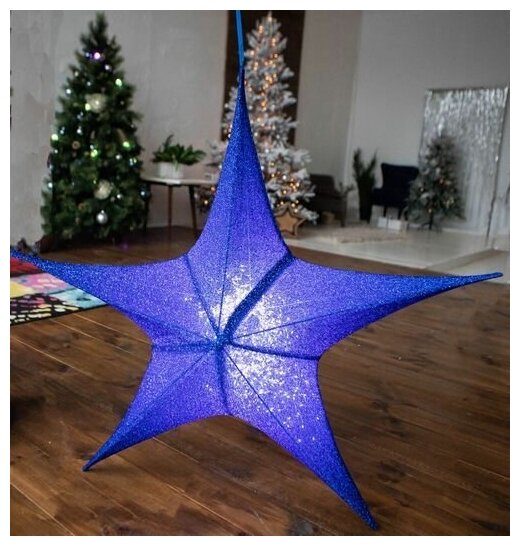 Звезда из ткани с блестками Snowhouse, складная конструкция, 80 см, синий (Z80B)