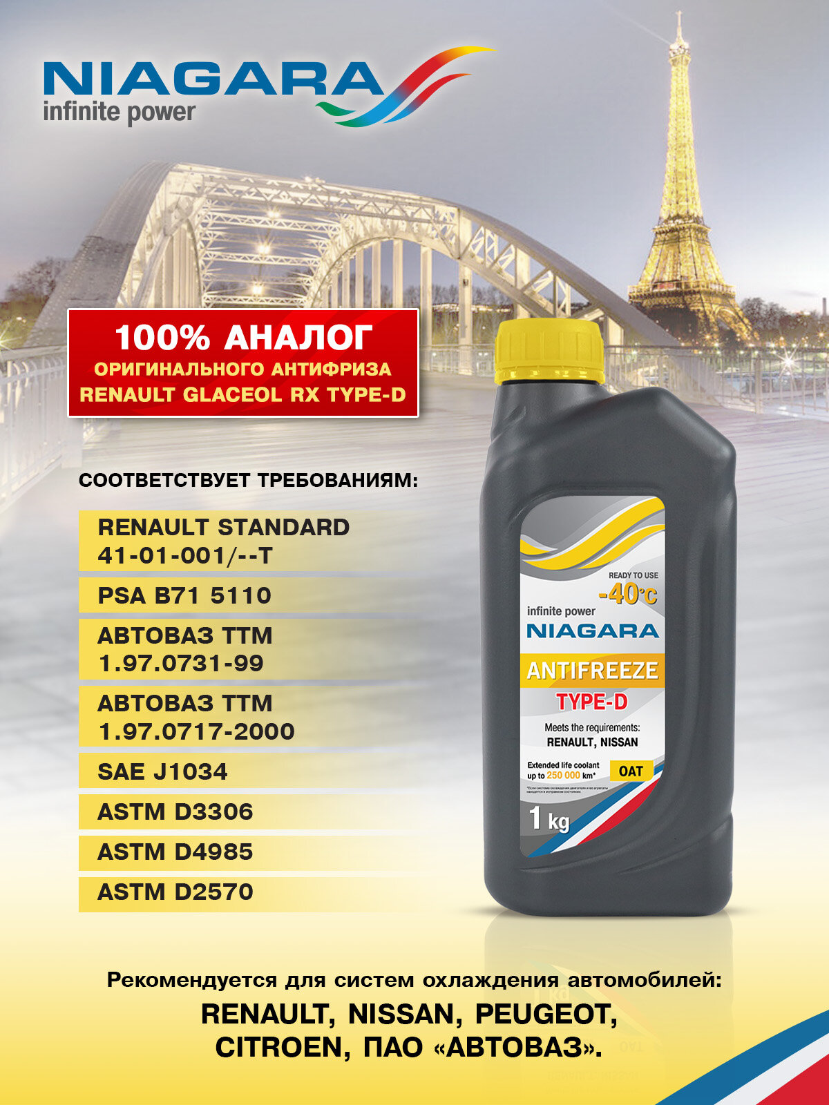 Жидкость охлаждающая антифриз "NIAGARA" TYPE-D 1 кг интересное: