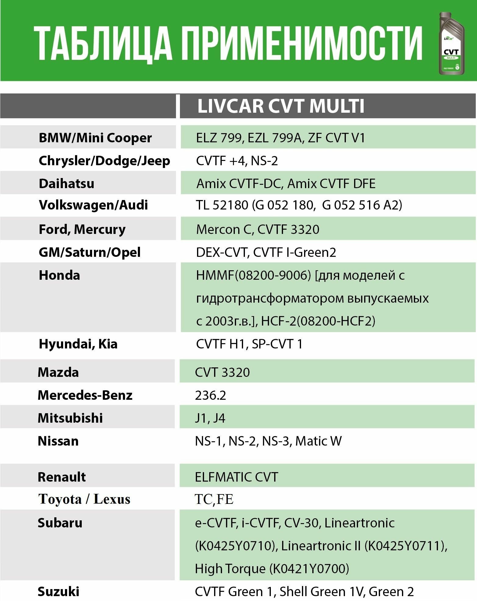 Жидкость трансмиссионная LivCar MULTI CVT (1л) интересное: