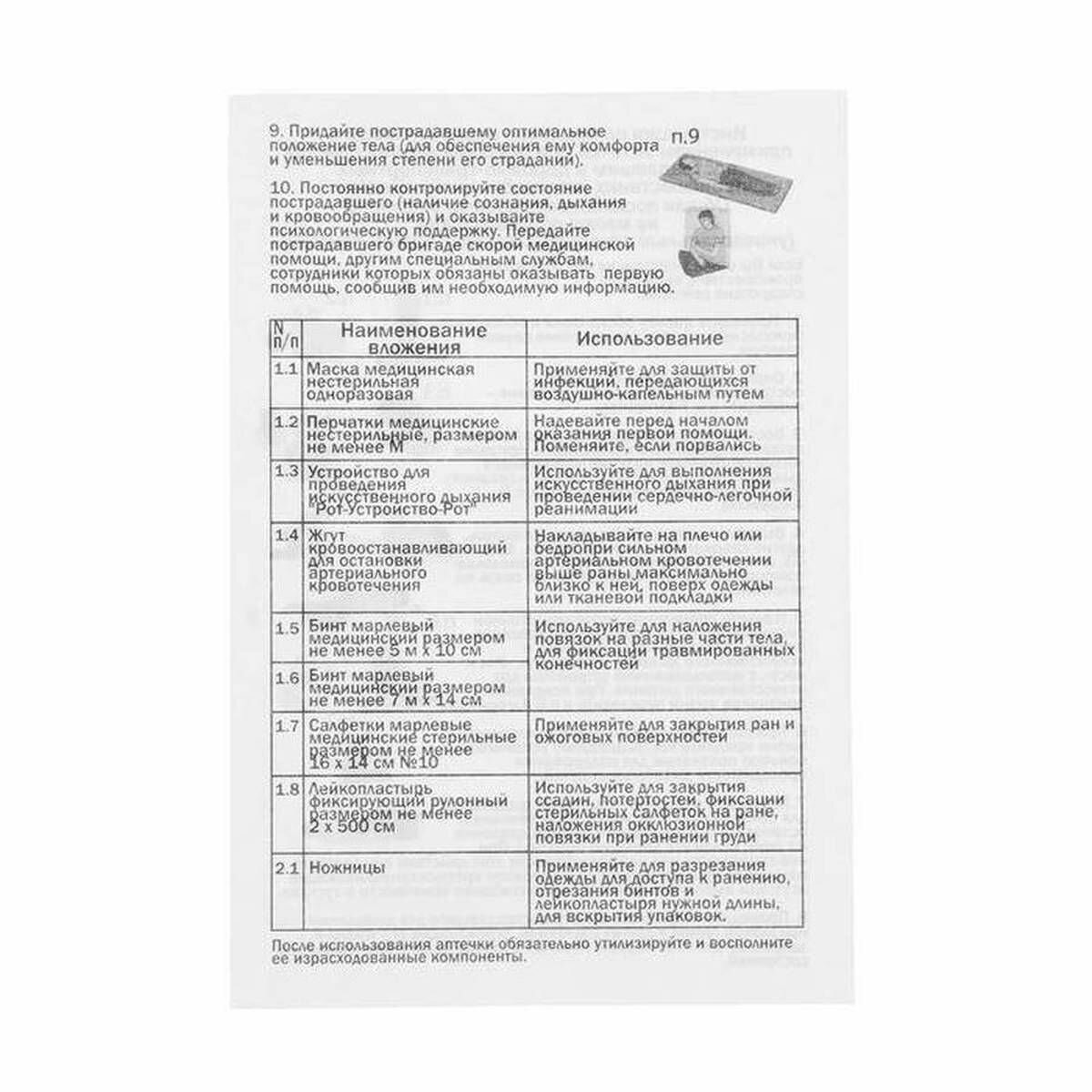 Аптечка автомобильная салют д/оказания первой помощи Арт. 3739 (Россия) 290г