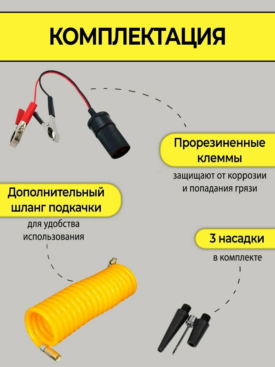 Компрессор автомобильный двухпоршневой с сумкой SMARTCRV, 300Вт, 12В, 85л/мин, набор для легкового и грузового транспорта
