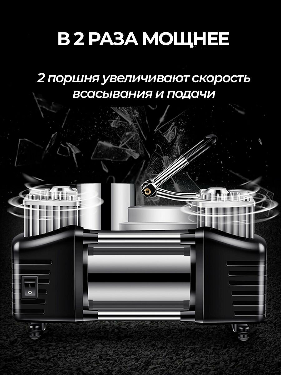 Компрессор автомобильный двухпоршневой насос с сумкой мощный, грузовой, 301Вт, 12В, 85л/мин, для легкового и грузового транспорта, SMARTCRV