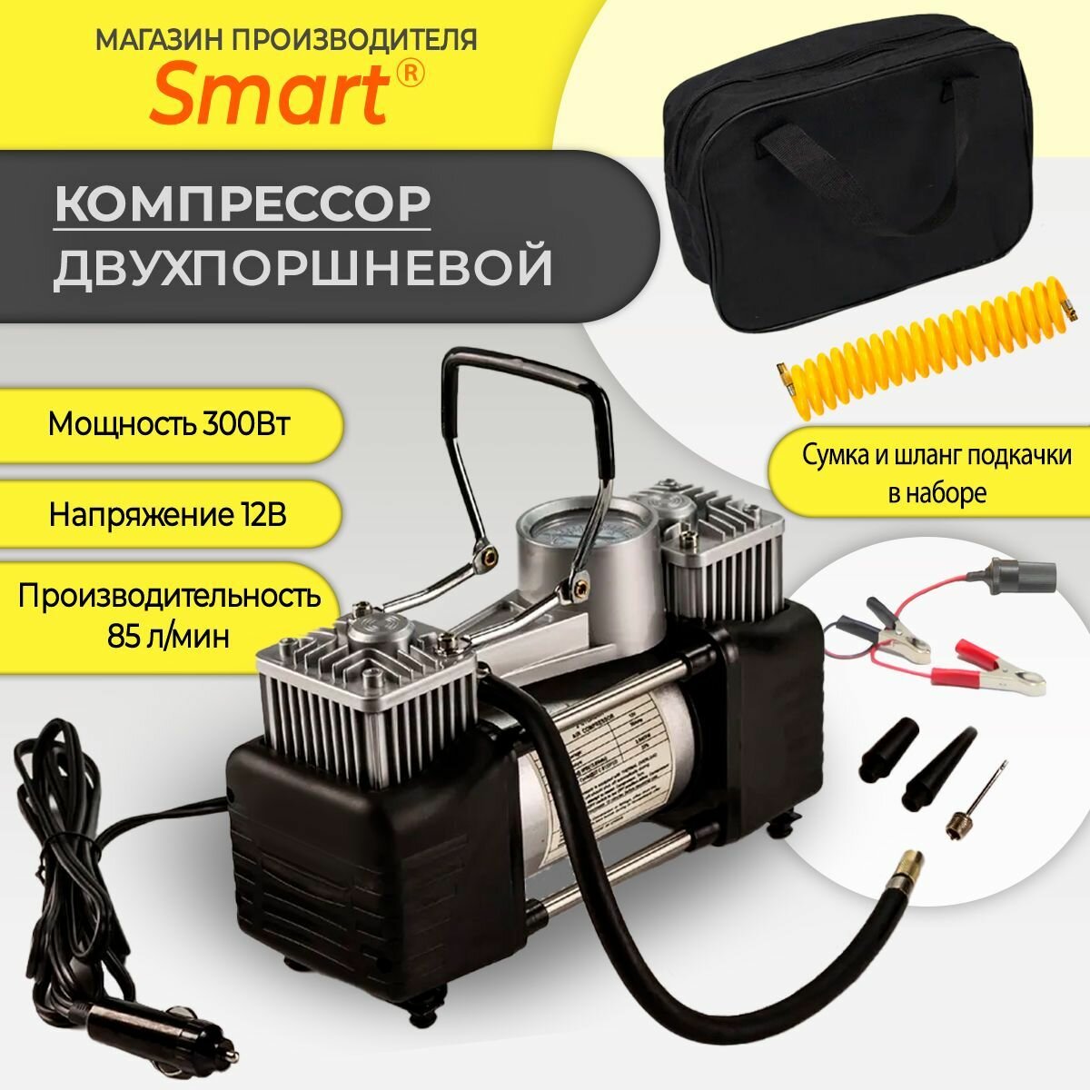 Купить Компрессор автомобильный двухпоршневой в сумке, SMART, 300Вт, 85л/мин, набор, для легкового / грузового / коммерческого транспорта