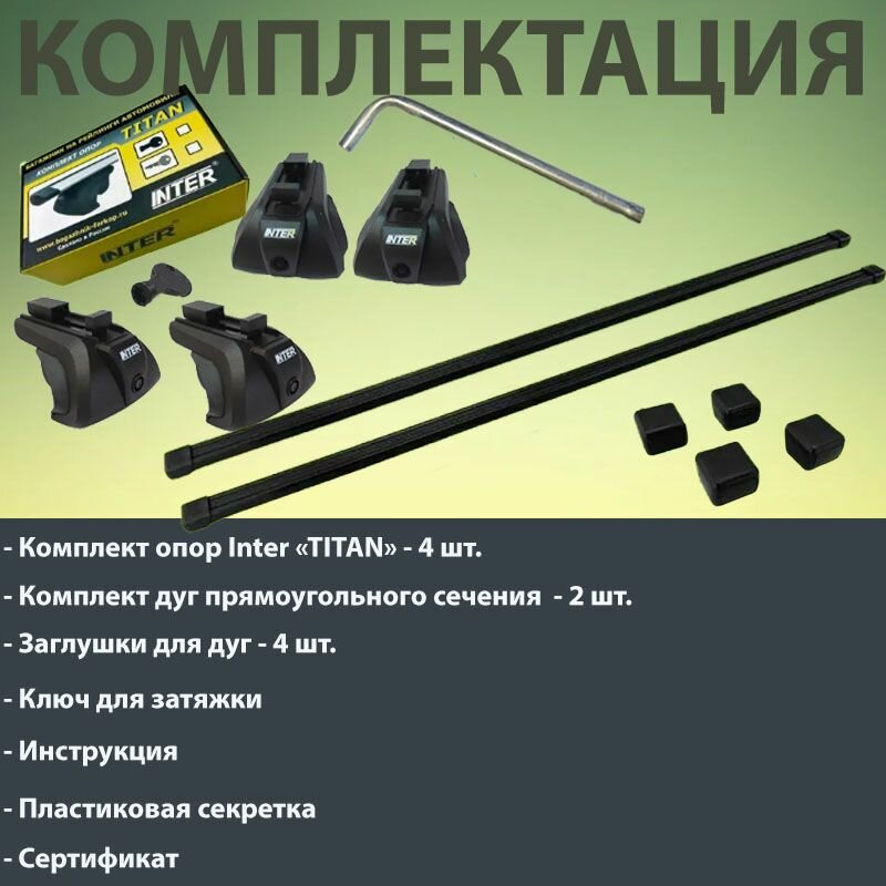 | Подробная комплектация | * Коробка с опорами (в коробке 4 опоры); * Дуги - 2 шт * Ключ для установки * Инструкция * Сертификат |