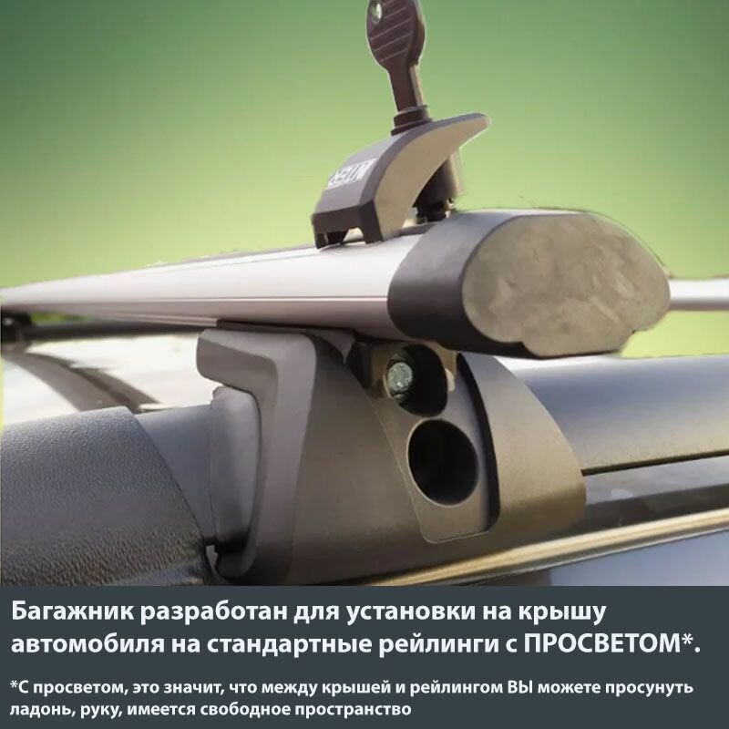 Багажник для Toyota Land_Cruiser_Prado__90 внедорожник 1996-2002 на рейлинги c просветом. Опоры TITAN с крыловидными поперечинами серебро L-130 см