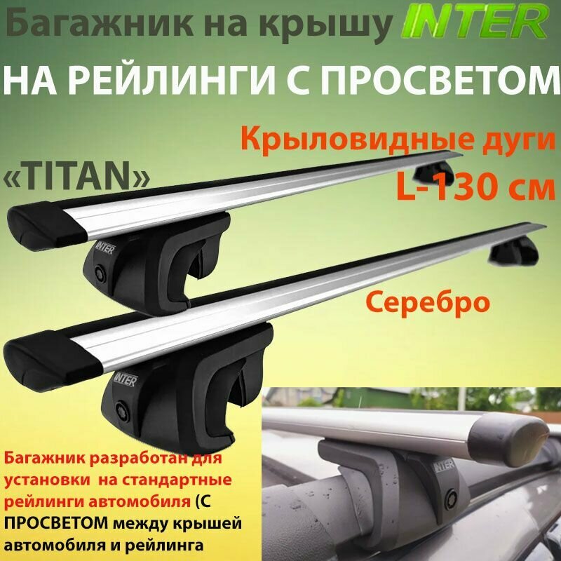 Купить Багажник для Toyota Land_Cruiser_Prado__90 внедорожник 1996-2002 на рейлинги c просветом. Опоры TITAN с крыловидными поперечинами серебро L-130 см