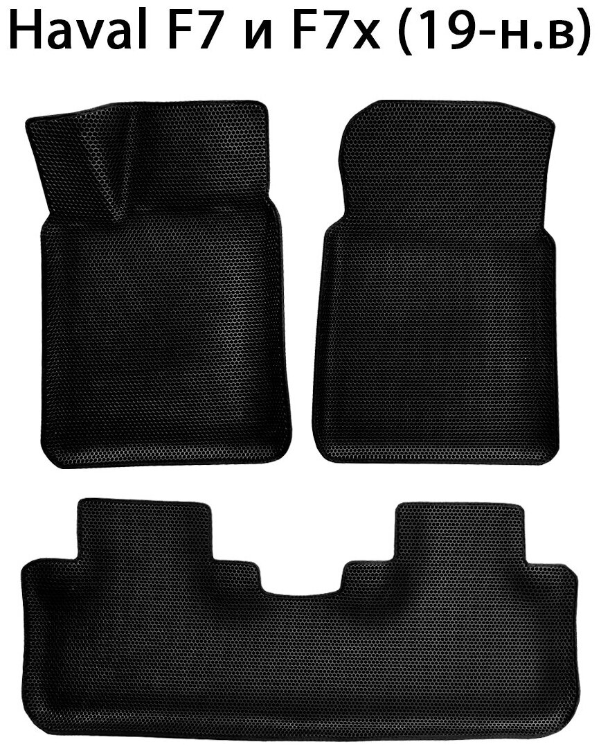 Комплект 3D ковриков ЭВА с бортами в салон авто для Haval F7 I (18-24г.), F7x I (19-24г.). ЕВА соты от SUPERVIP для Хавал. Черный цвет.