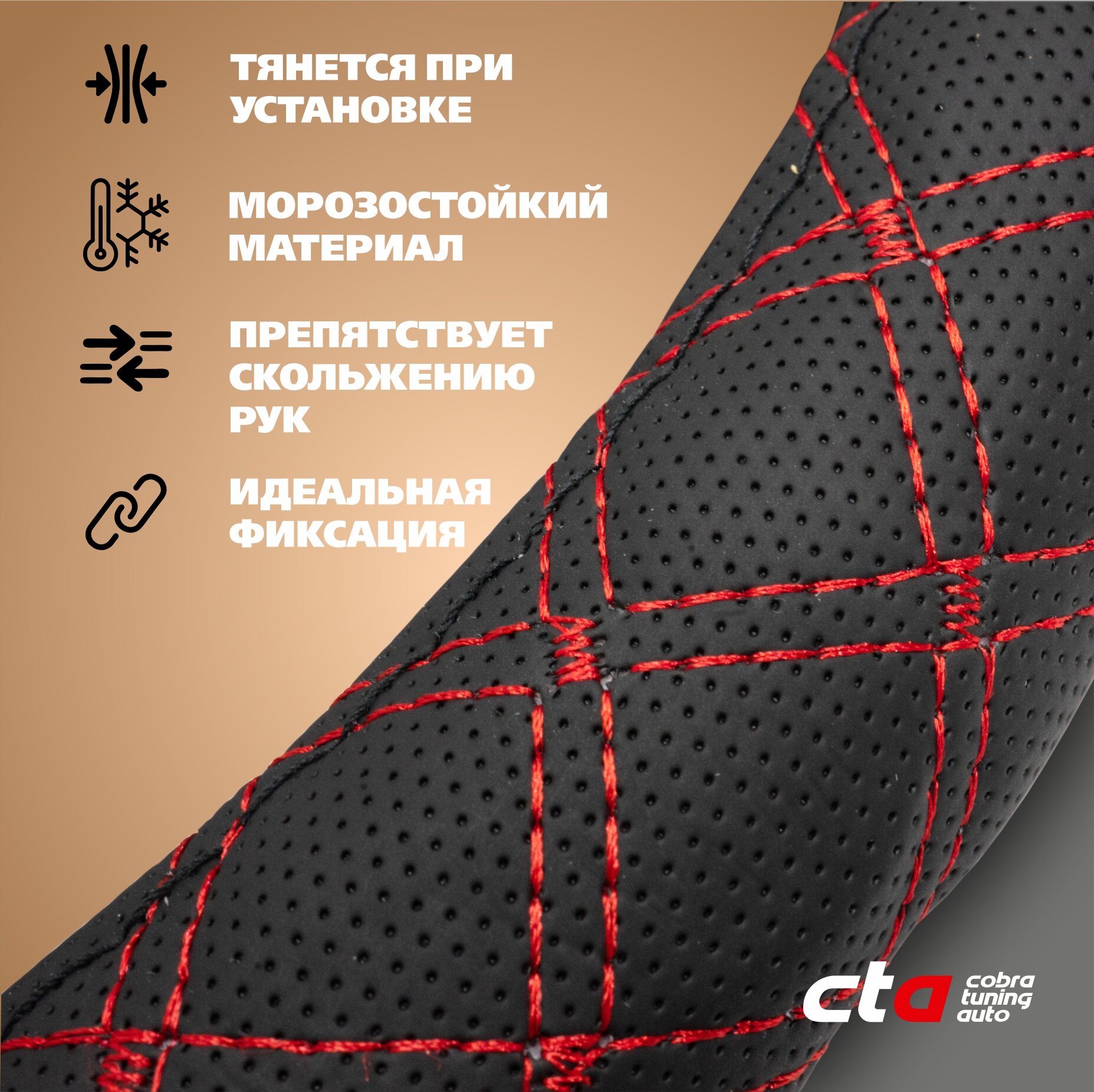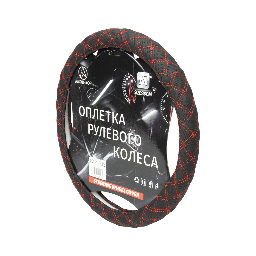 Купить Оплетка (чехол) на руль автомобиля Ваз, Лада, Иномарки размер М (38см) Черный + красный ромбик