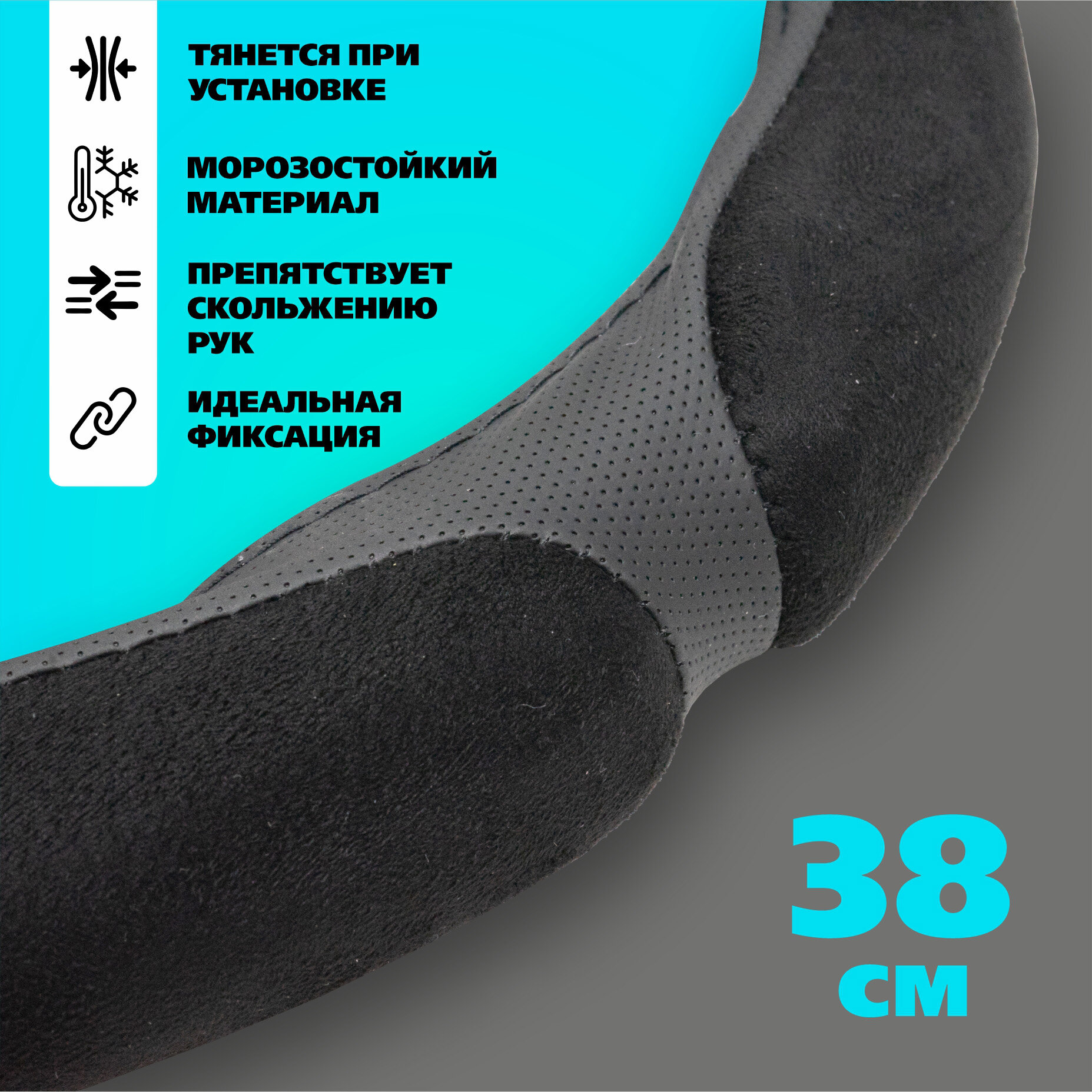 Оплетка (чехол) на руль автомобиля Ваз, Лада, Иномарки, размер М (38см) цвет Черный, матовый