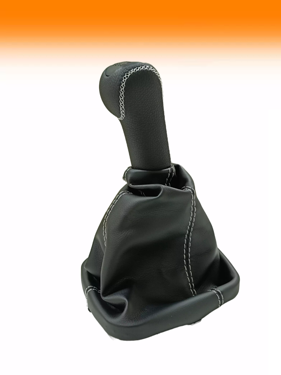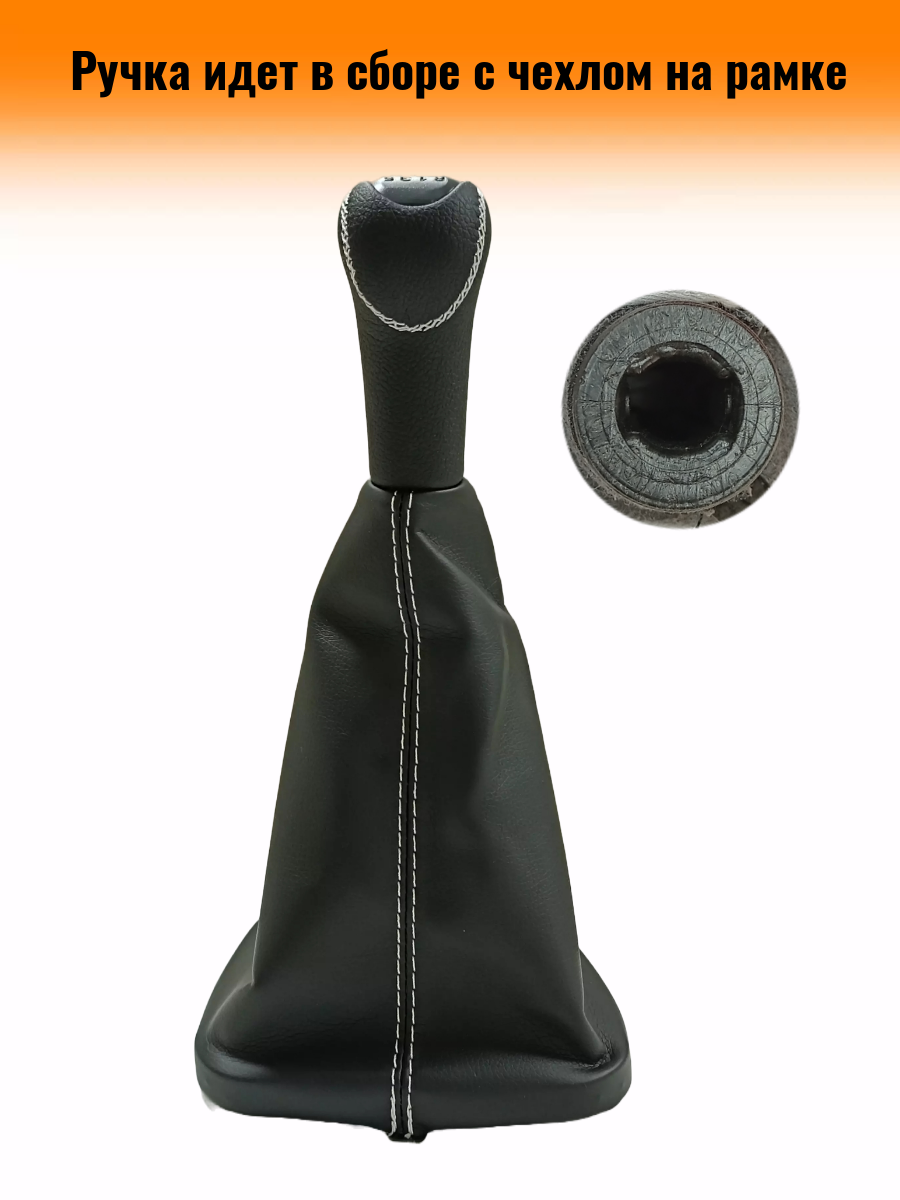 Ручка КПП с чехлом люкс-черный на ВАЗ-2110, 2111, 2112 (Лада, Lada), черный с белой строчкой