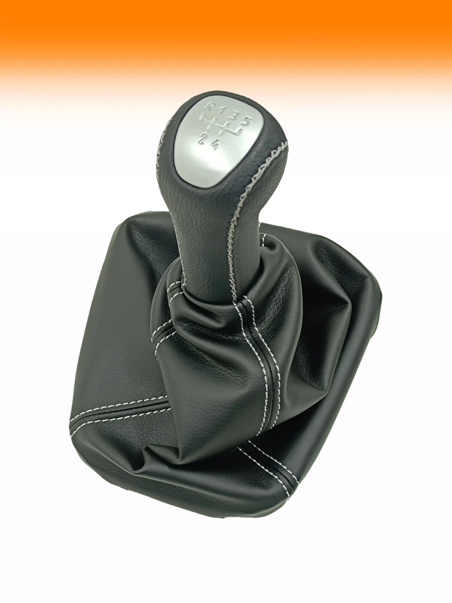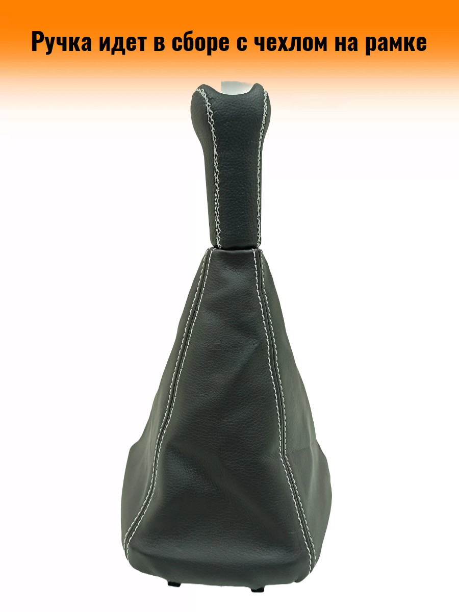 Ручка КПП с чехлом люкс-черный на ВАЗ-2110, 2111, 2112 (Лада, Lada), черный с белой строчкой