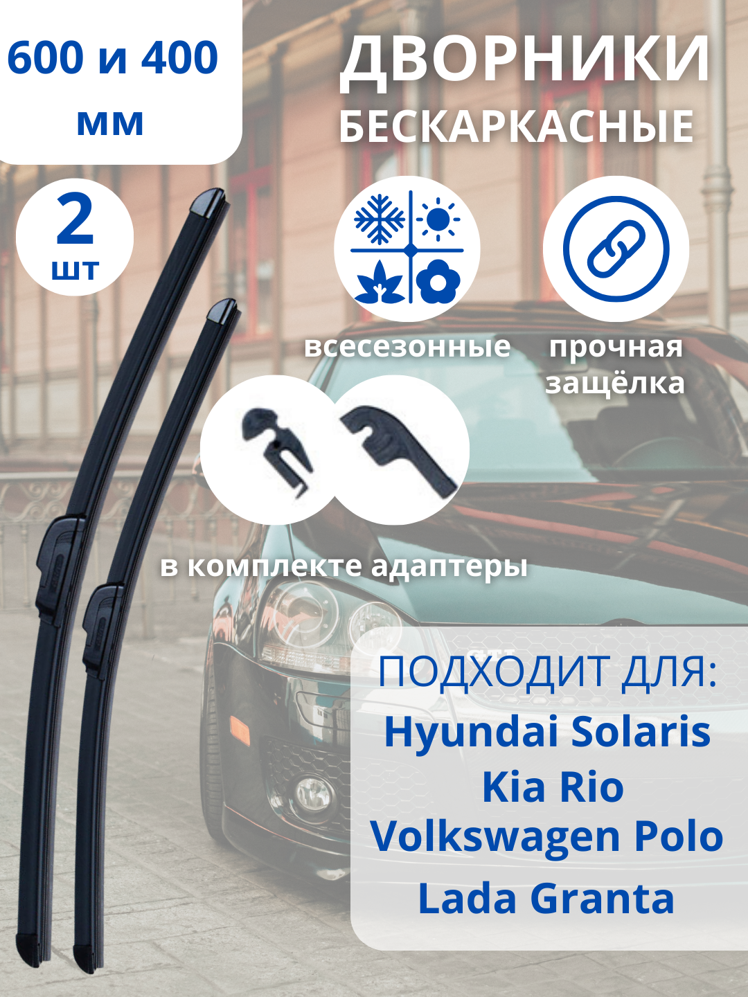 Щетки стеклоочистителя , дворники 600/400 мм бескаркасные всесезонные Hyundai Solaris,Kia Rio, Лада Гранта, Датсун. интересное: