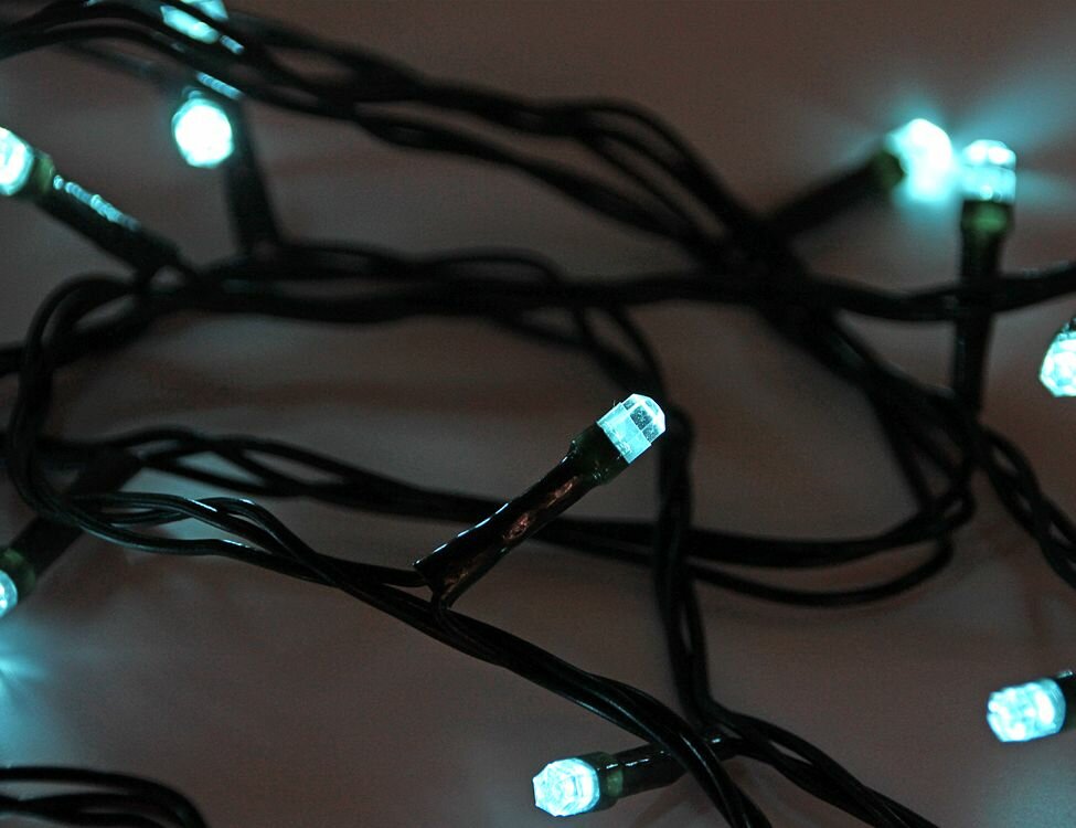 Светодиодная гирлянда Кристалл 120 холодных белых LED ламп 12 м, зеленый ПВХ, соединяемая, IP44, SNOWHOUSE DC-LD120-W-E