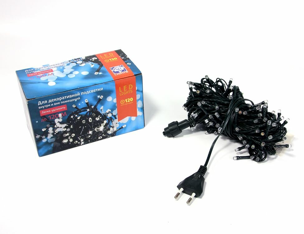 Snowhouse Светодиодная гирлянда Кристалл 120 экстра теплых белых LED ламп 12 м, зеленый ПВХ, соединяемая, IP44 DC-LD120-С-E