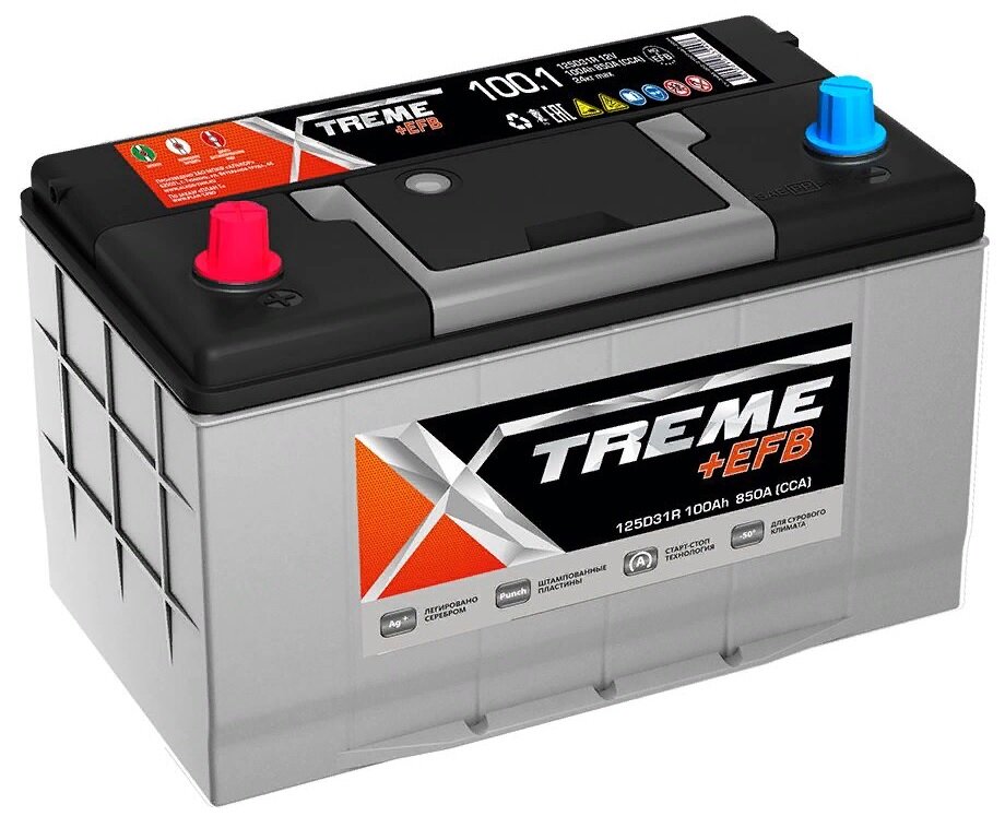 Купить Аккумулятор автомобильный Xtreme EFB 125D31R 100 А/ч 850 А прям. пол. Азия авто (302x172x220) с бортиком