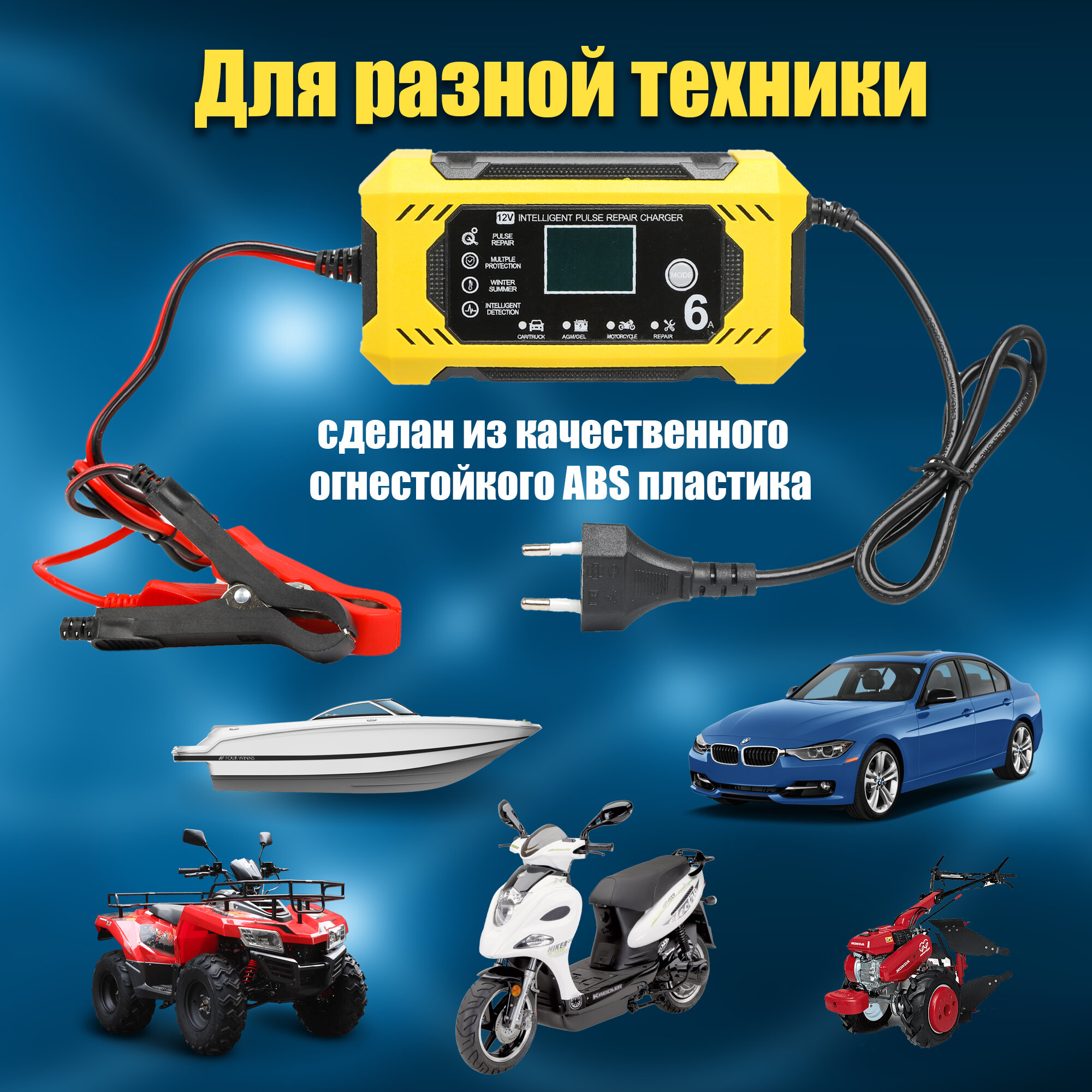Зарядное устройство для аккумулятора автомобиля 12v/6A 4 Режима