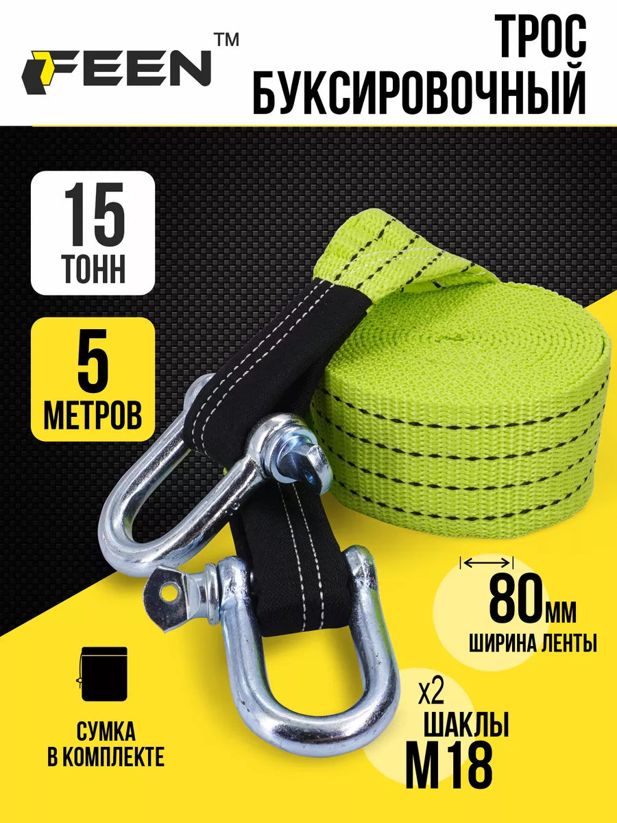 Купить Трос буксировочный для автомобиля FEEN, с шаклами 15 т 5 м, с рабочей нагрузкой 7 т