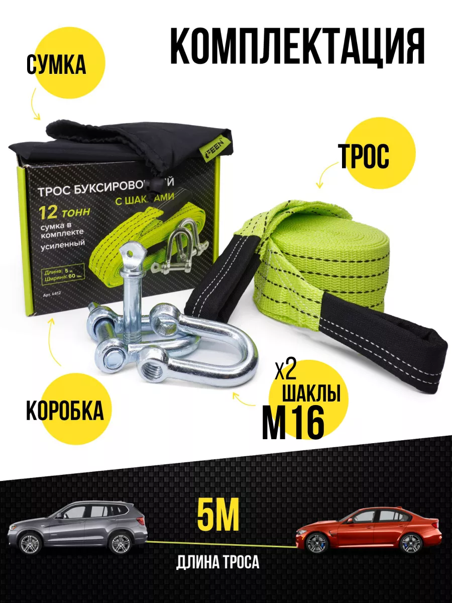 СохранитьТрос буксировочный для автомобиля FEEN, с шаклами 12 т 5 м, с рабочей нагрузкой до 5 т интересное: