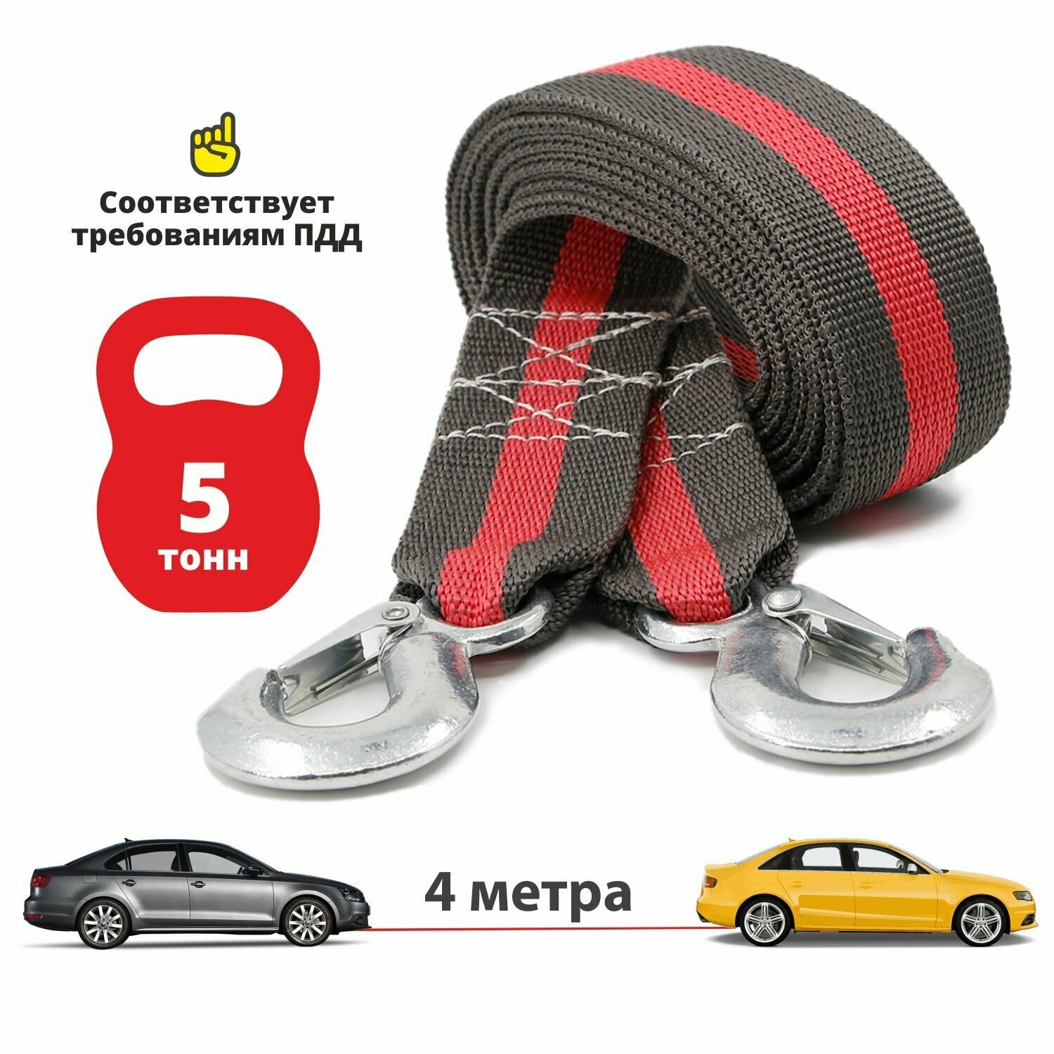 Трос буксировочный лента 5 т, 2 крюка, в блистере (стропа усиленная)
