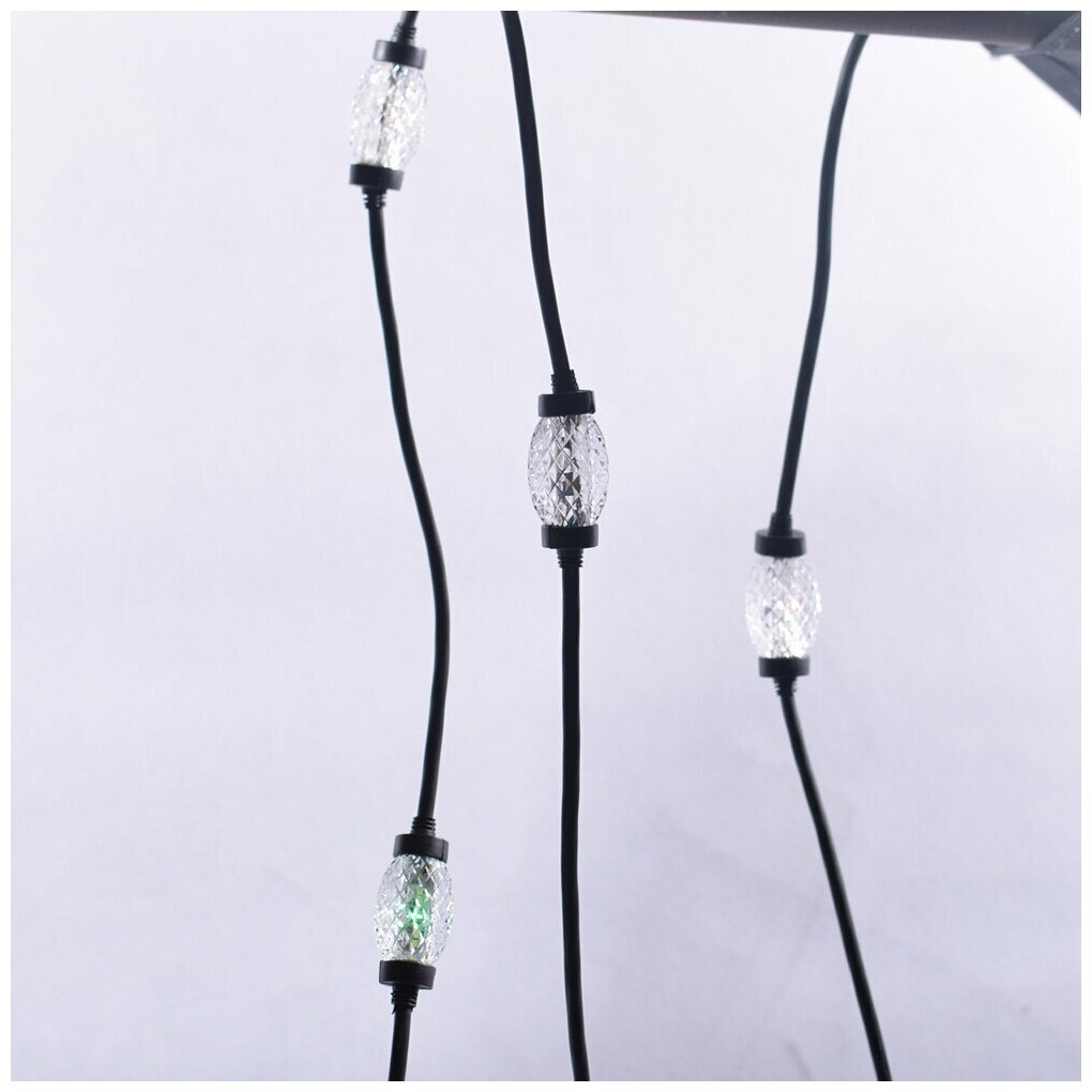 Электрогирлянда даймонд с 9 строб-лампами (разноцветный фон - белая вспышка), 220 V, 3+1,5 м, провод черный каучуковый, коннектор, уличная, SNOWHOUSE LD-DM-9-M-WS