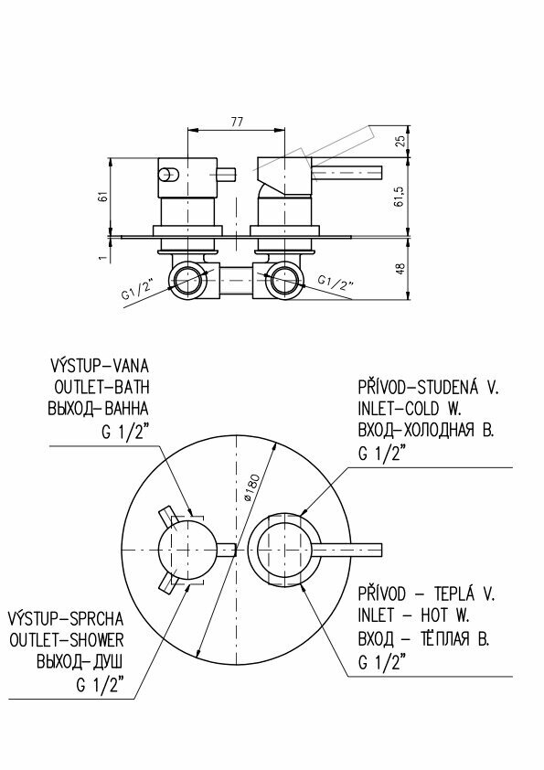 Rav Slezak Seina Смеситель для душа монтирующийся в стену с керамическим переключателем цвет хром (SE986K)