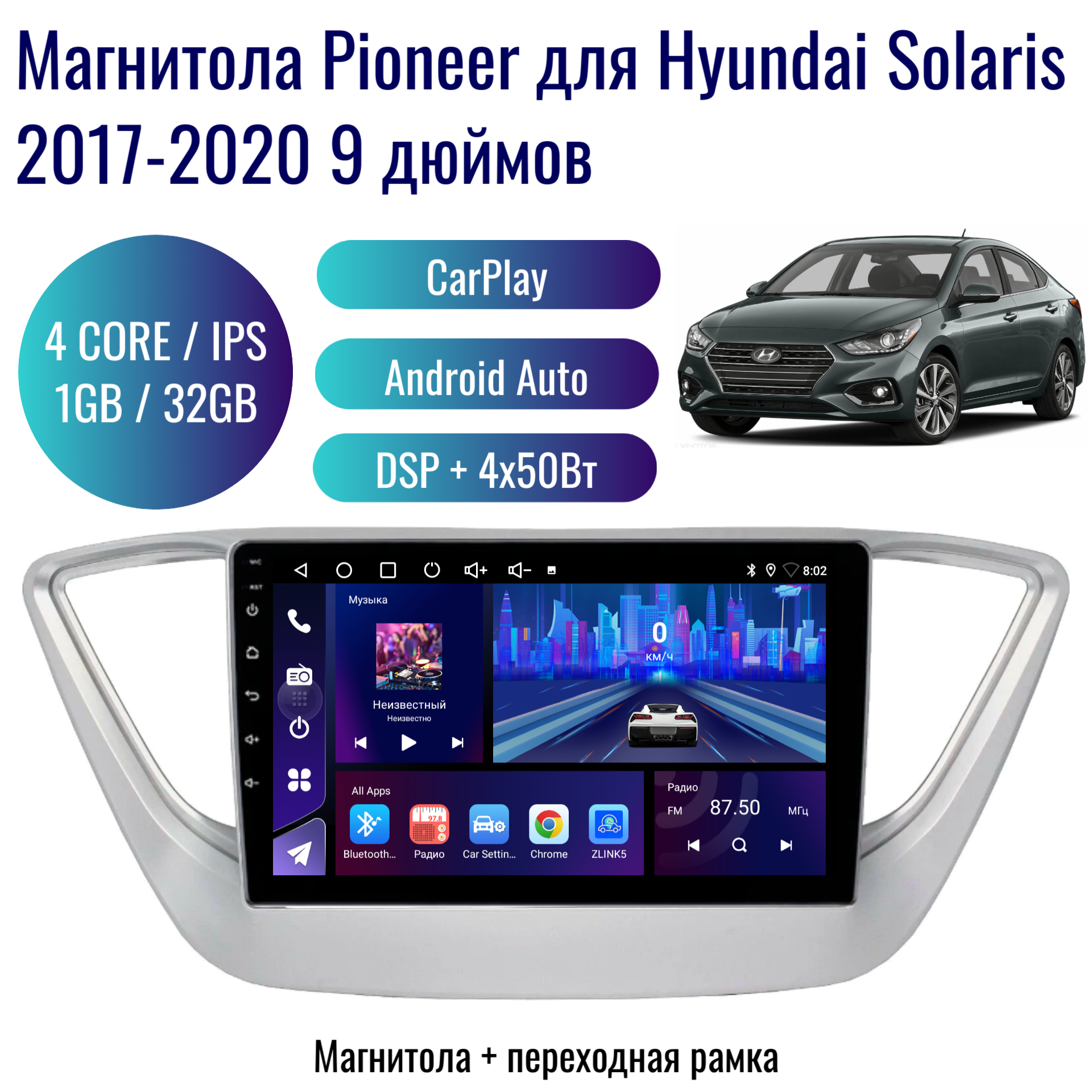 Купить Автомагнитола Pioneer Android для Hyundai Solaris 2017-2020 / 4 ядер 1Gb+32Gb / 9 дюймов / GPS / Bluetooth / Wi-Fi / штатная магнитола / 2din / навигатор /