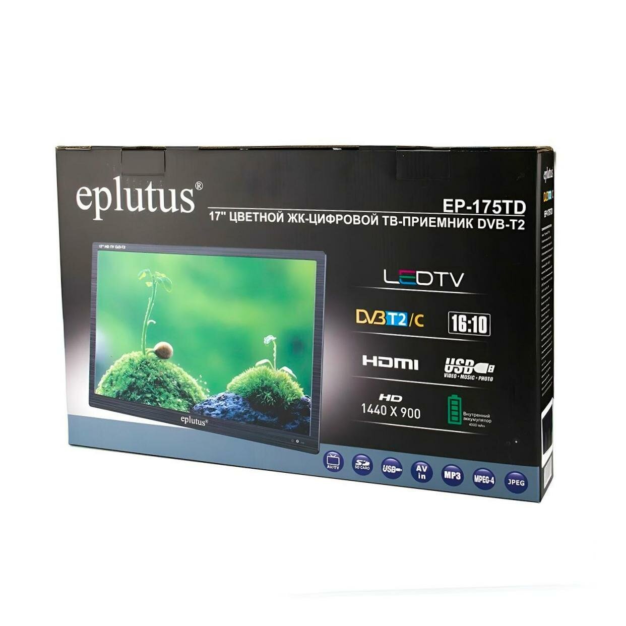 Телевизор Эплутус EP-175TD (EU) (N51691PO) с жидкокристаллическим 17-дюймовым экраном и встроенным цифровым тюнером Т2 и аккумулятором 4000 мАч. интересное: