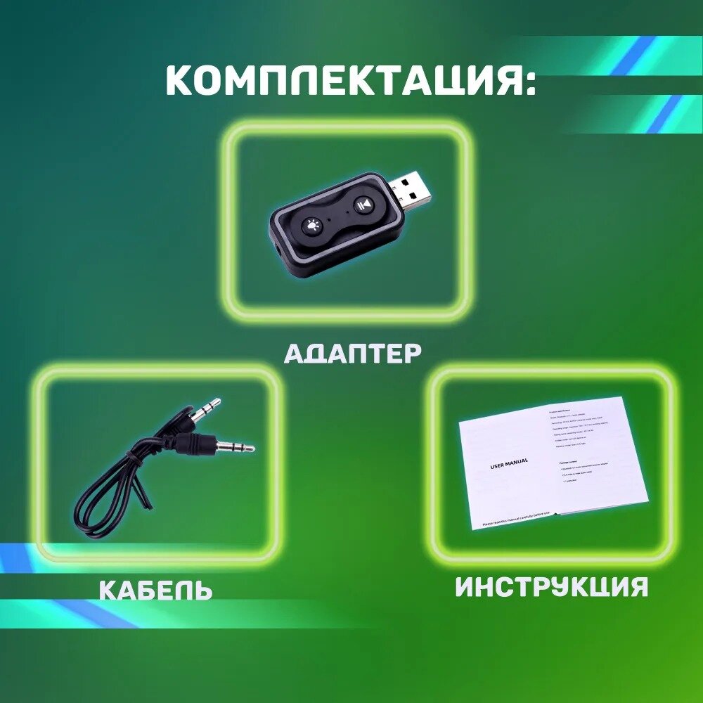 | Комплектация | Bluetooth адаптер, переходник AUX |