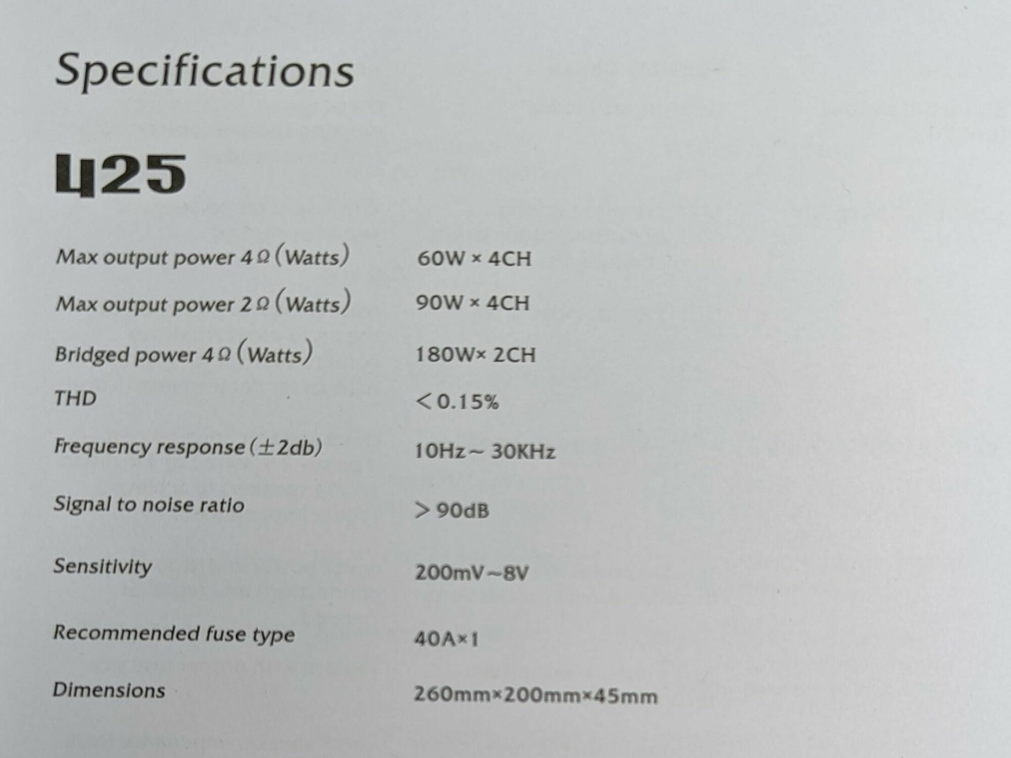 | Комплектация | Усилитель, Предохранитель 1 шт 40А, Саморезы для крепления 4 шт, Инструкция на Английском, Коробка |