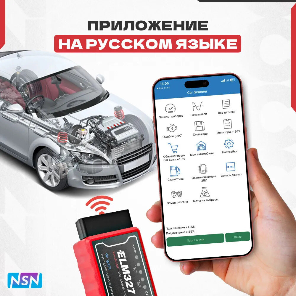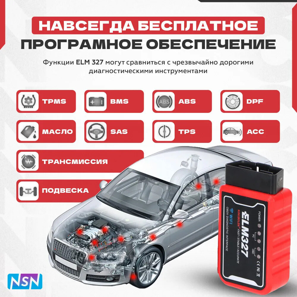 Автосканер диагностический NSN ELM327 OBD2 WiFi версия 1.5 PIC18F25K80 для IOS, Android, Windows. интересное: