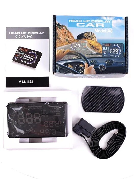 | Комплектация | Проекционный дисплей, провод для подключения с разъёмом OBD2, инструкция |