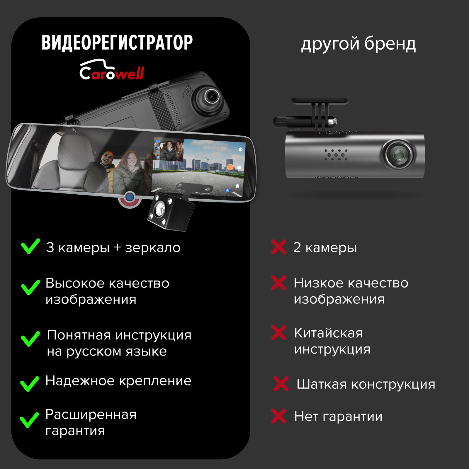 Автомобильный видеорегистратор зеркало Carowell HD Trio, FULL HD 1080p. MV2024 интересное: