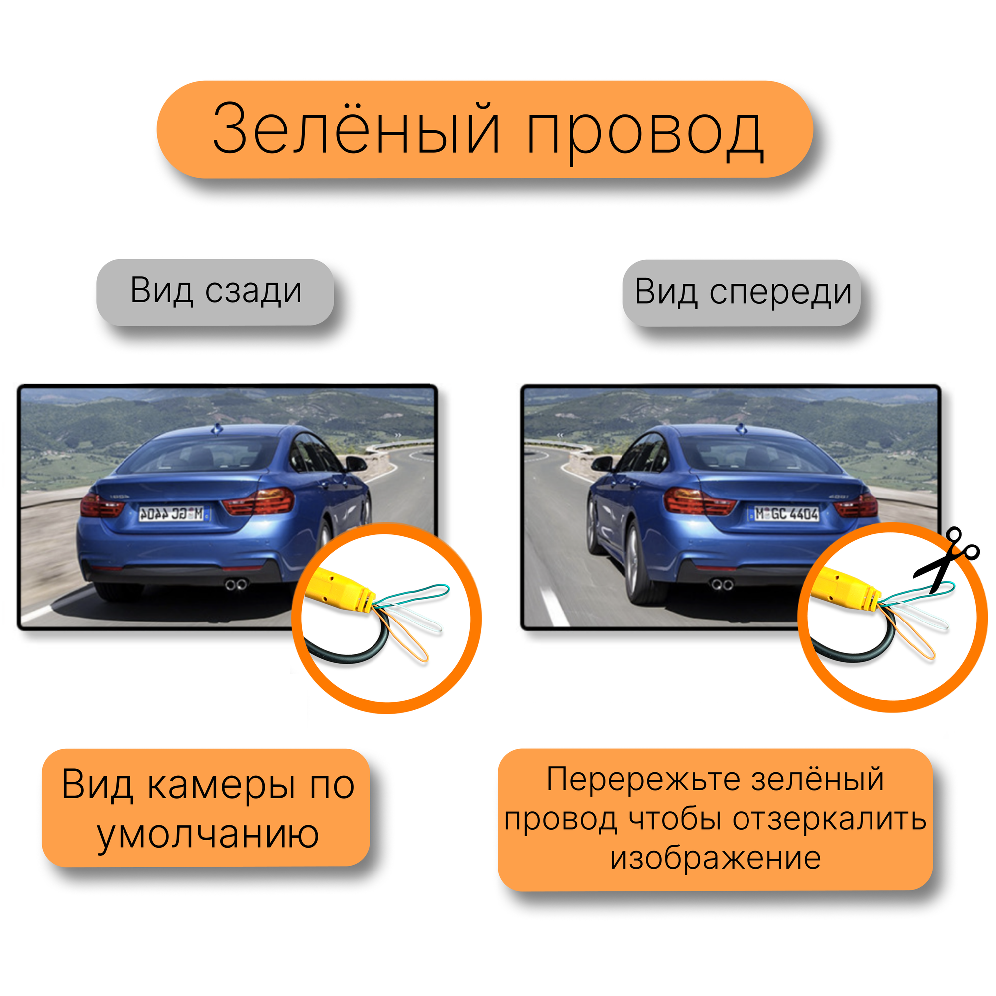 | Особенности | автоматическая настройка баланса белого / активация задней передачей / запись видео / зеркальное отображение / наклон камеры по вертикали / ночной режим / парковочные линии / переворот отображения / переключение типа сигнала AHD и CVBS |