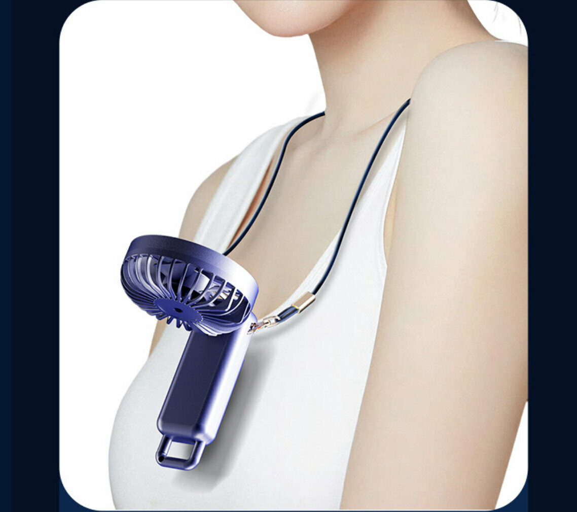 Вентилятор на шею СИНИЙ НОВЫЙ, безлопастной, 100 скоростей на колесике, USB