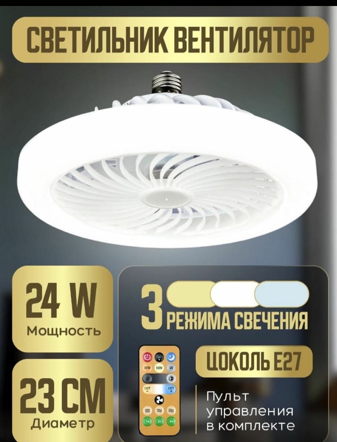 Управляемая светодиодная лампа-вентилятор FAN LAMP 24W+4W E27 R-ON/OFF-270x143-WHITE-220-IP20 интересное: