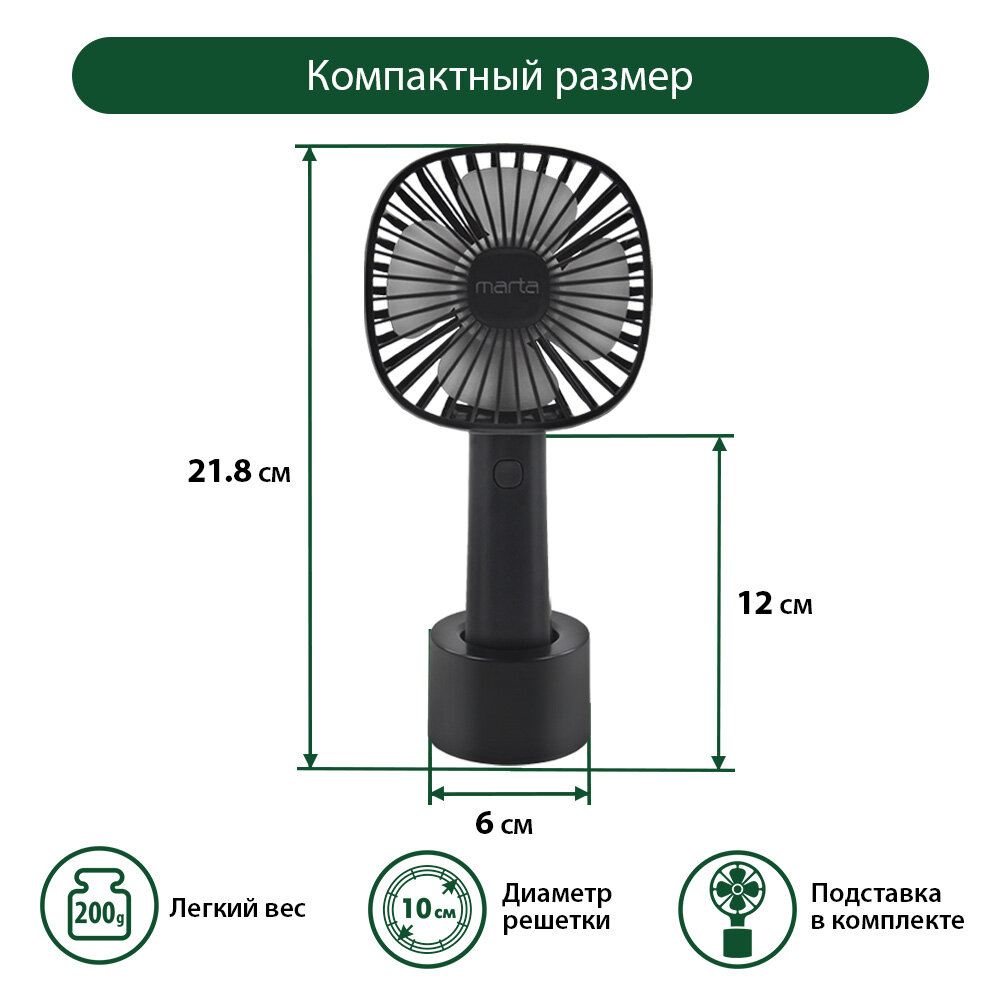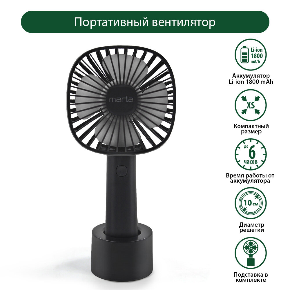 Вентилятор портативый MARTA MT-FN2548 черный/серый интересное: