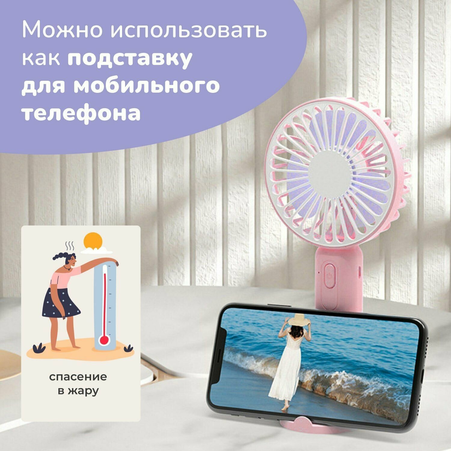 Мини вентилятор ручной бесшумный с подставкой под телефон 8 часов работы интересное: