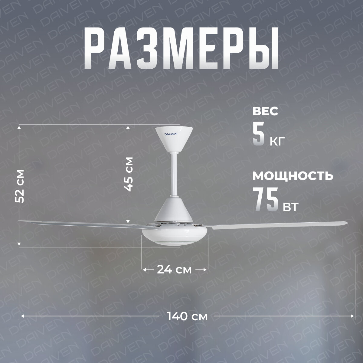 Потолочный вентилятор DAIVEN Эверест White Chrome 140 / 5 скоростей интересное: