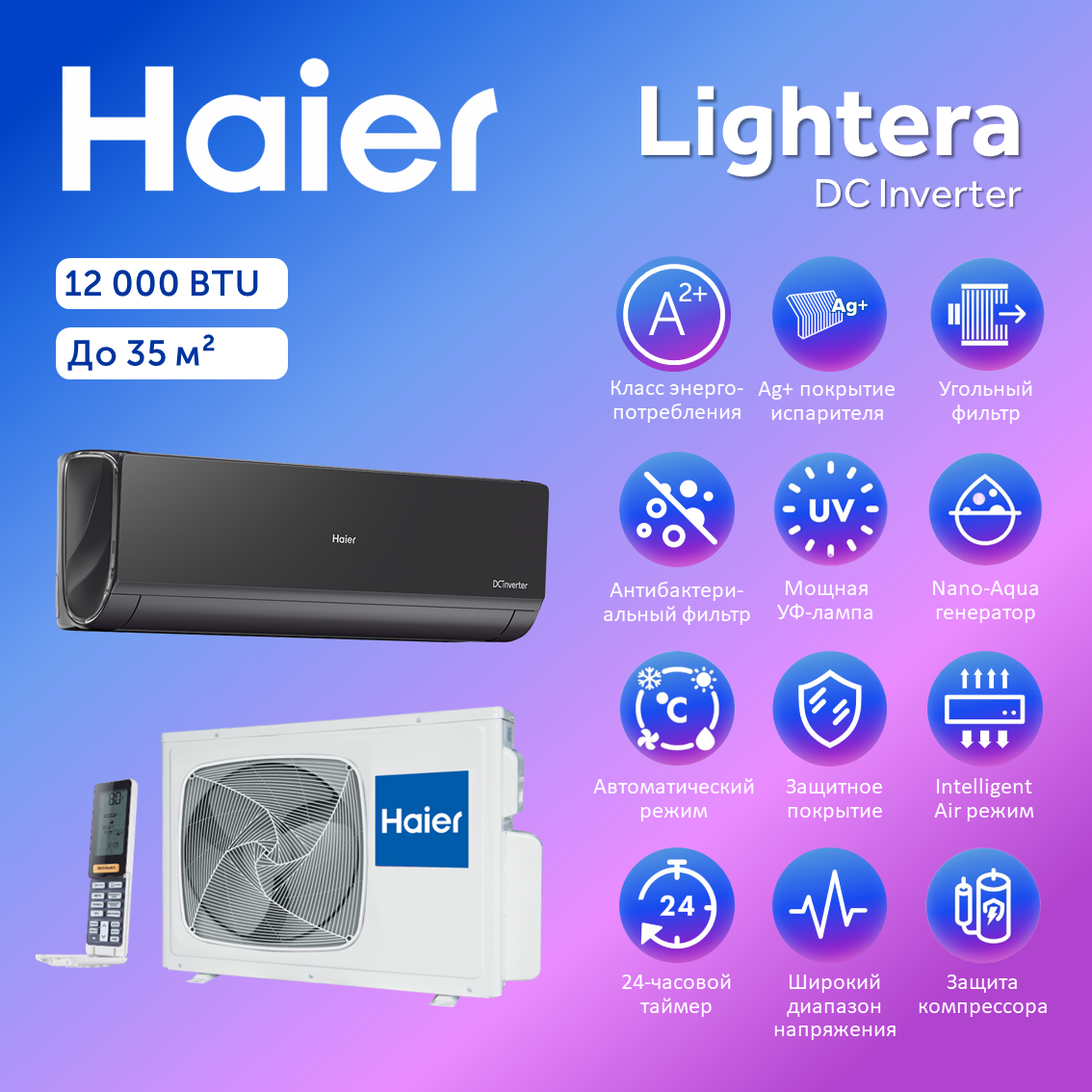 СохранитьСплит-система Haier Lightera AS12NS6ERA-B / 1U12BS3ERA интересное: