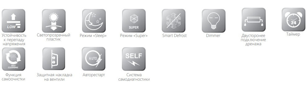 | Дополнительные функции | автоматическое поддержание температуры / автоперезапуск / ионизация / самодиагностика / самоочистка внутреннего блока / система против образования льда / теплый пуск |