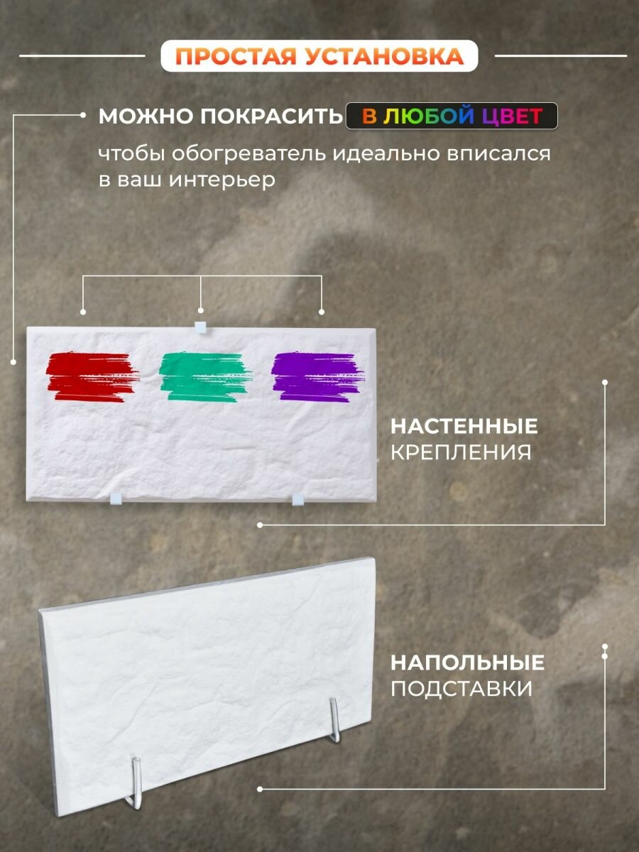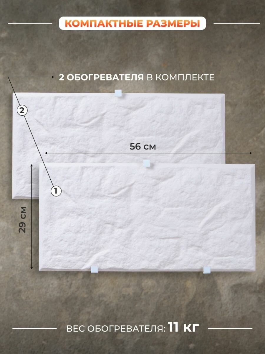 | Подробная комплектация | 2 обогревателя, паспорт, 2 комплекта напольных и настенных креплений |