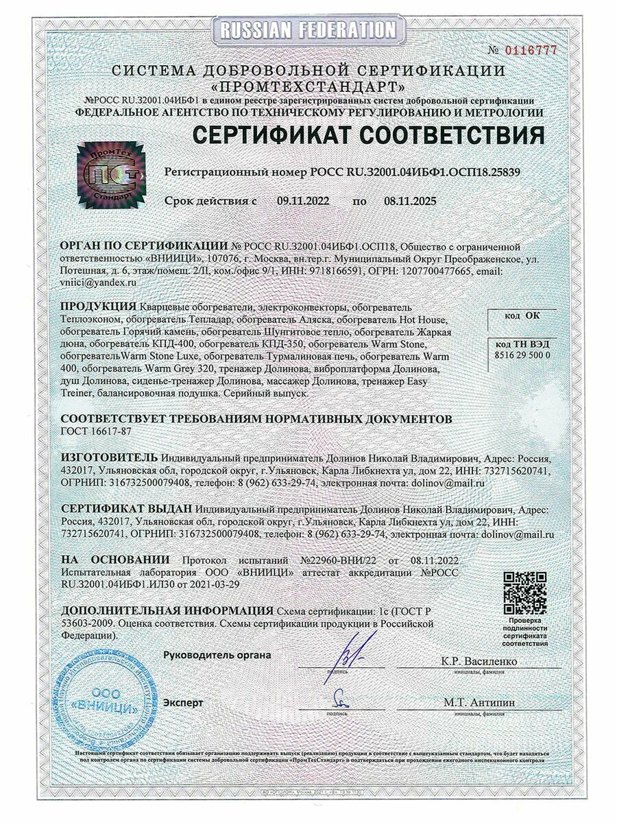 Кварцевый обогреватель "Русская печка" 440Вт+440Вт интересное: