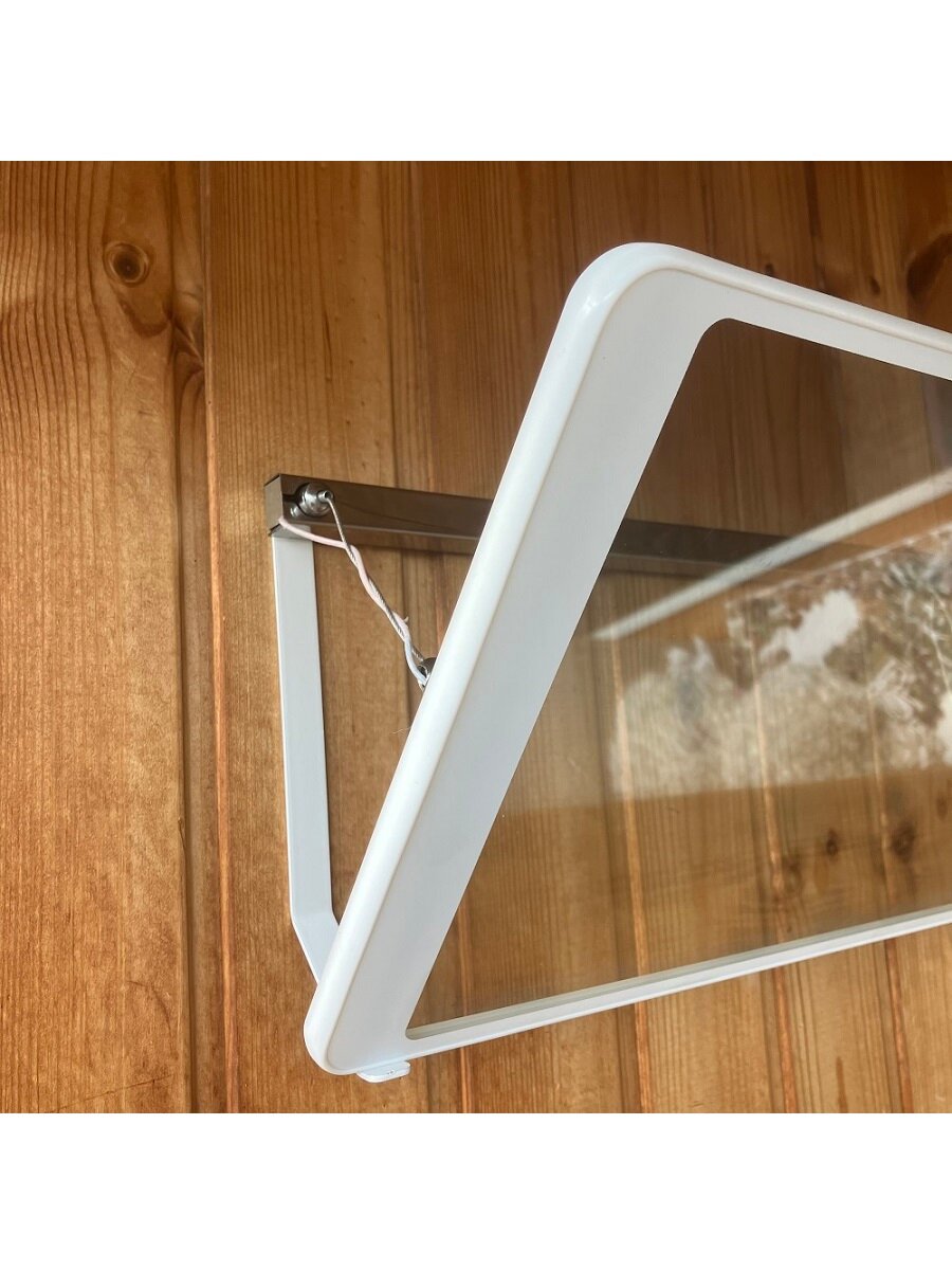 | Плюсы: | Интересное дизайнерское решение. Греет не плохо. Деревянный потолок над собой нагревает не сильно (рука спокойно держит тепло нагретого потолка над обогревателем, высота подвеса от потолка 20 см). Под ним реально очень тепло, как под солнцем. |