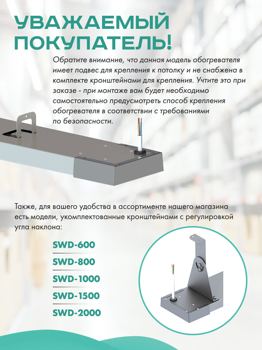 Обогреватель инфракрасный потолочный SWD-1000-SN, 1000 Вт интересное: