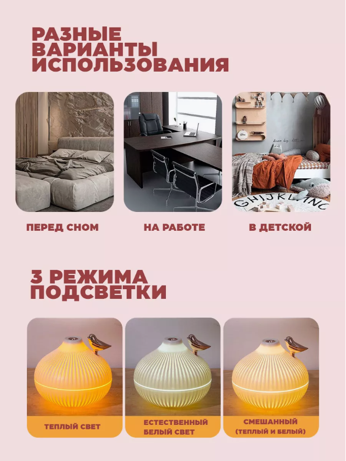 Ультразвуковой увлажнитель воздуха, ароманочник, ночник с аромадиффузором, Белый интересное: