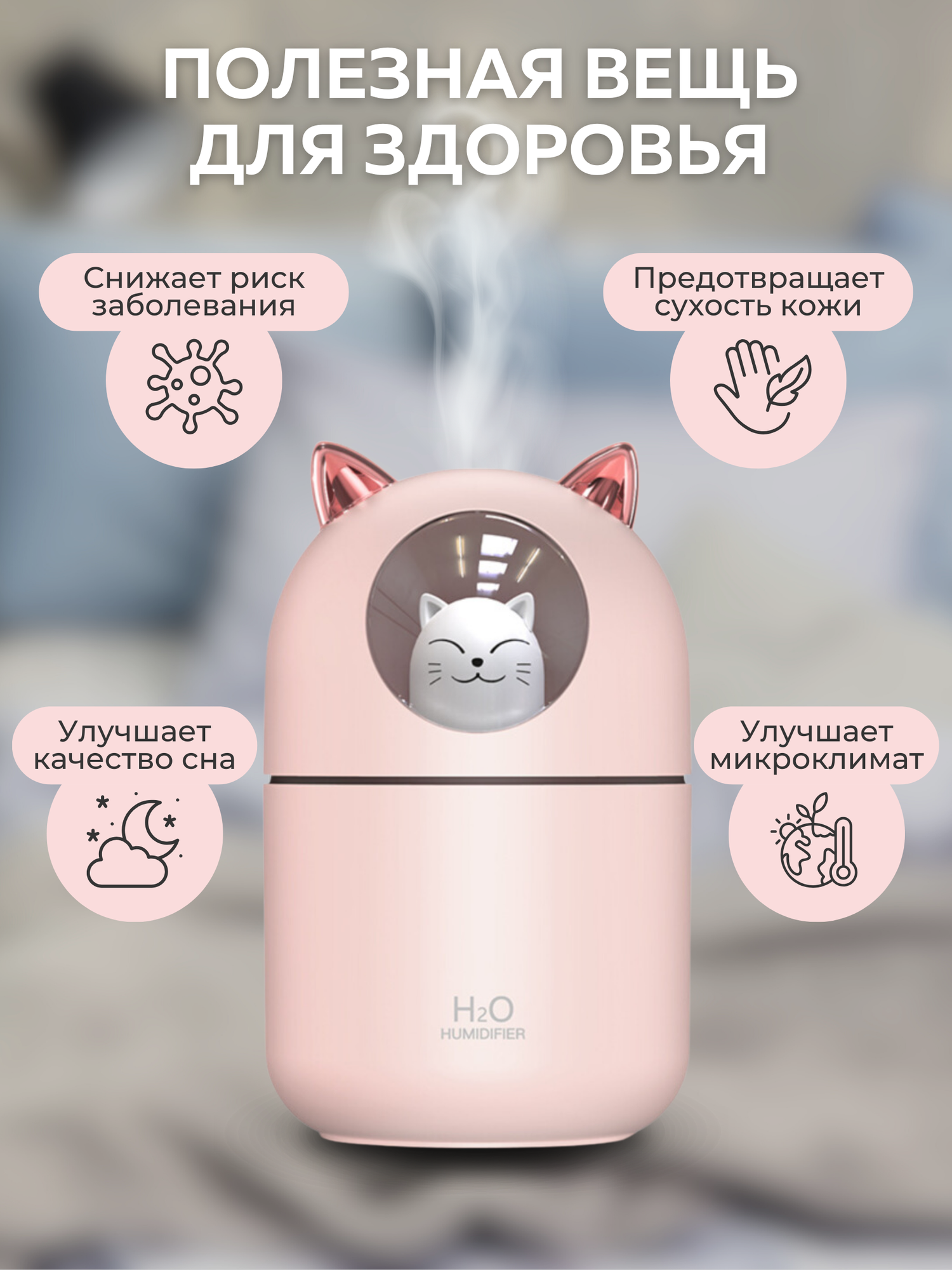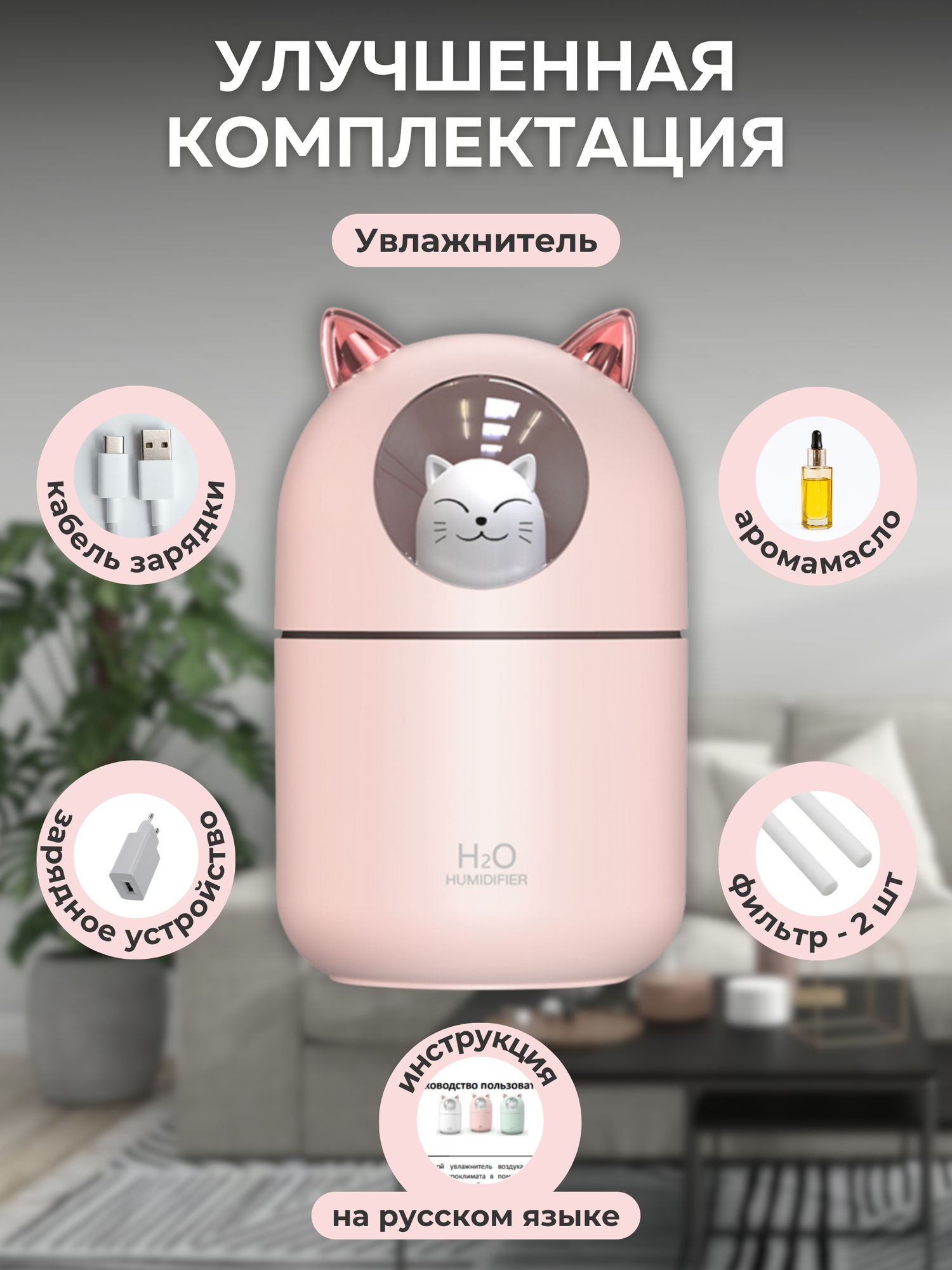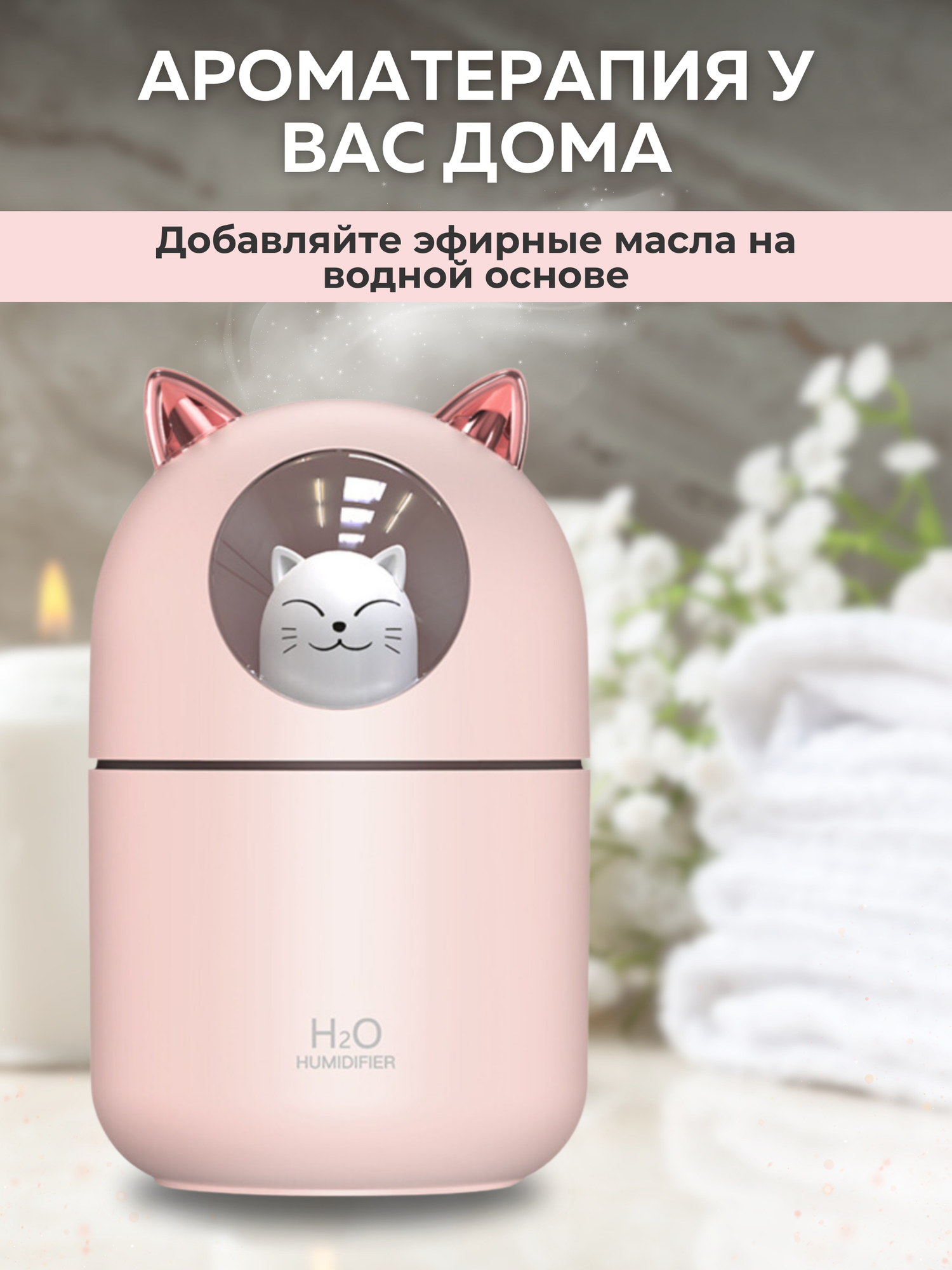 Увлажнитель воздуха ультразвуковой настольный A205 розовый, с аромадиффузором и подсветкой, с аромамаслом и фильтрами, для дома и офиса интересное: