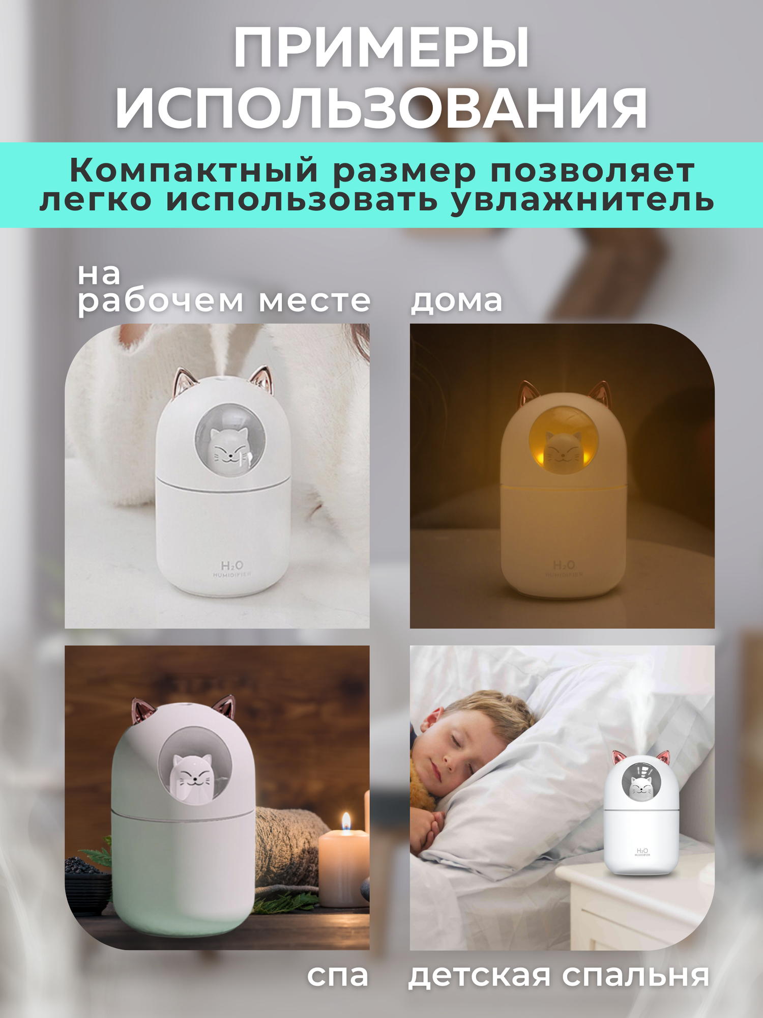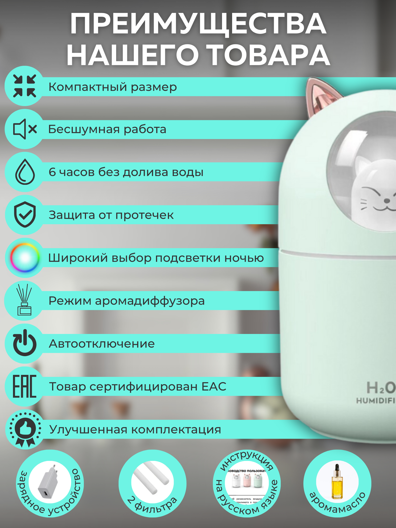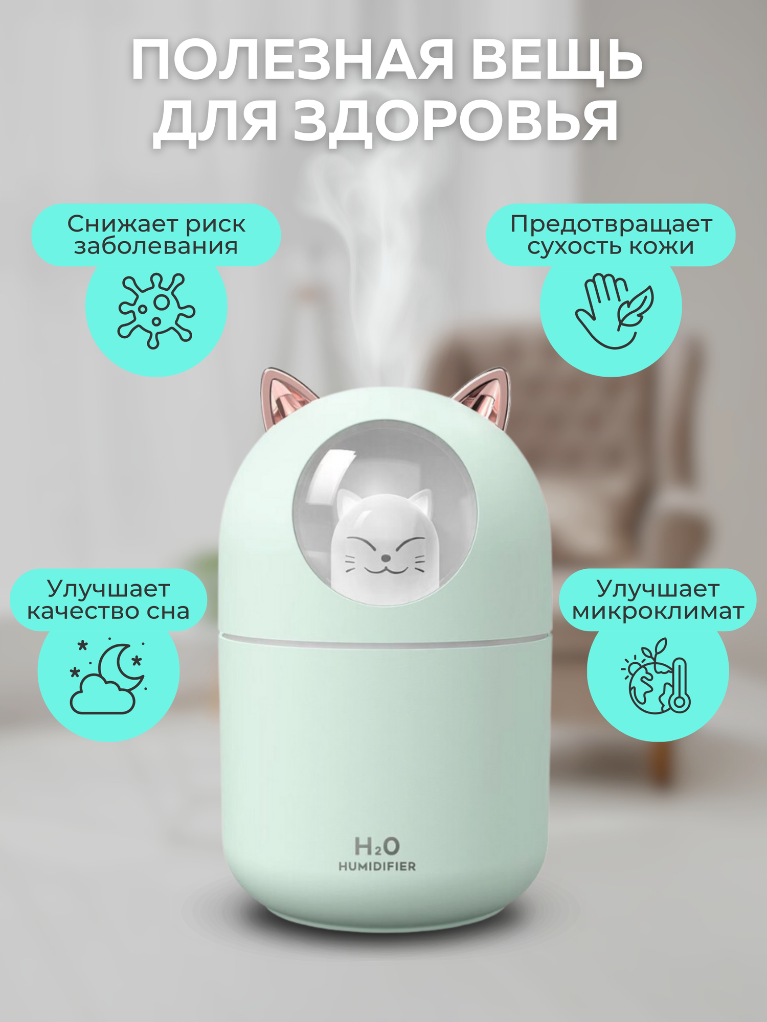 Увлажнитель воздуха ультразвуковой настольный A205 зеленый, с аромадиффузором и подсветкой, с аромамаслом и фильтрами, для дома и офиса интересное: