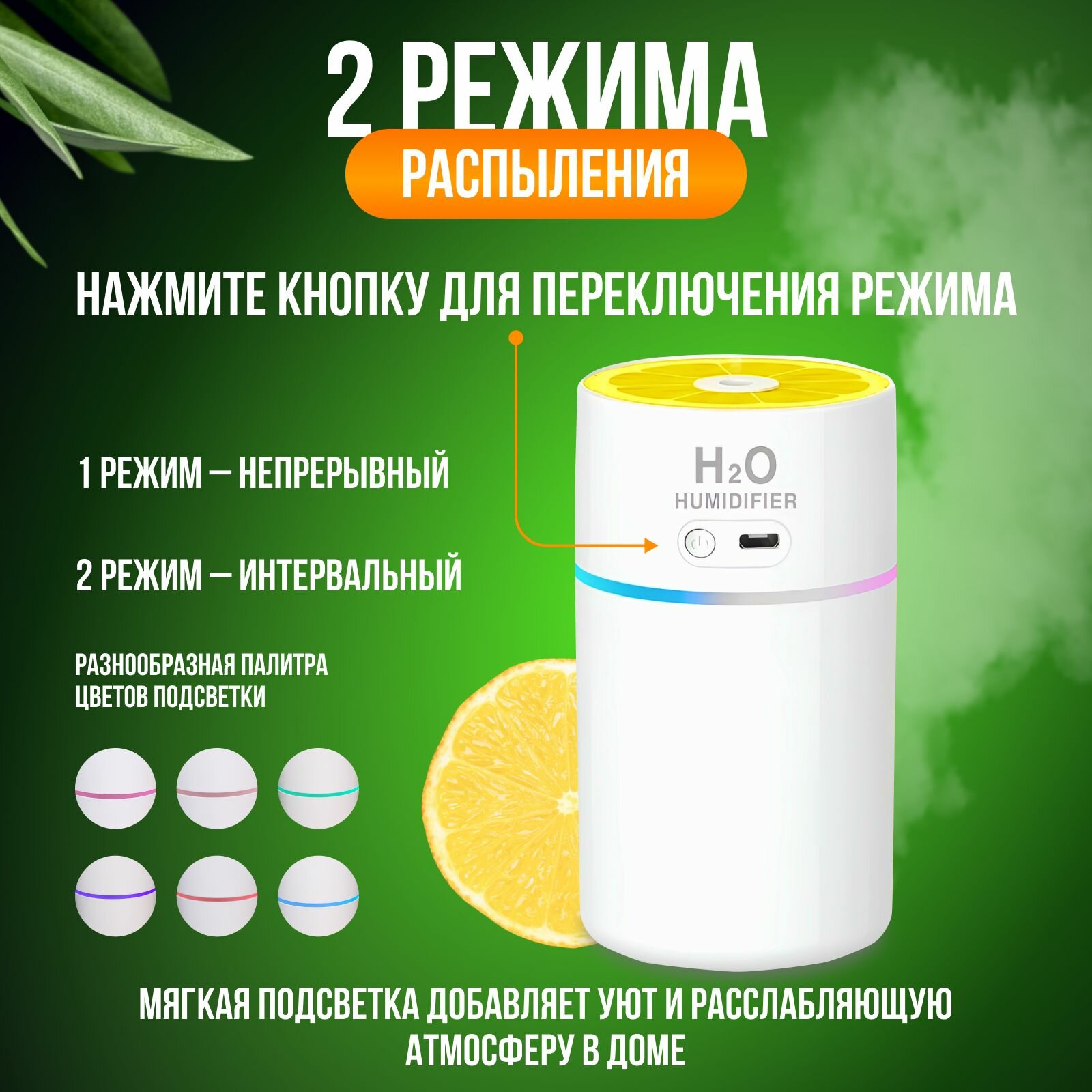 Ультразвуковой увлажнитель воздуха с подсветкой и ароматизацией, 450мл интересное: